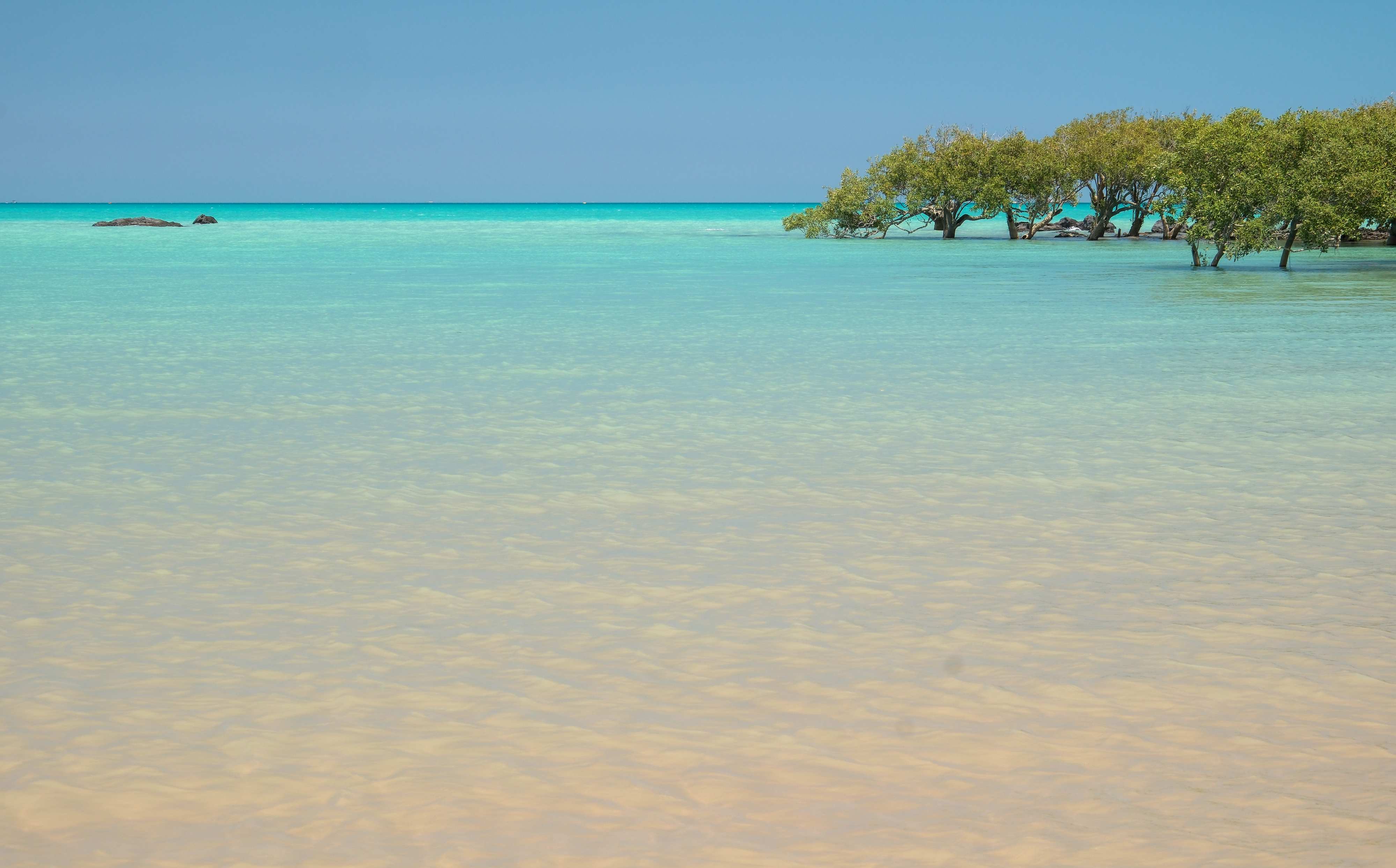 Am 'Piccaninny Creek' strahlt der weiße Sand in der Morgensonne.