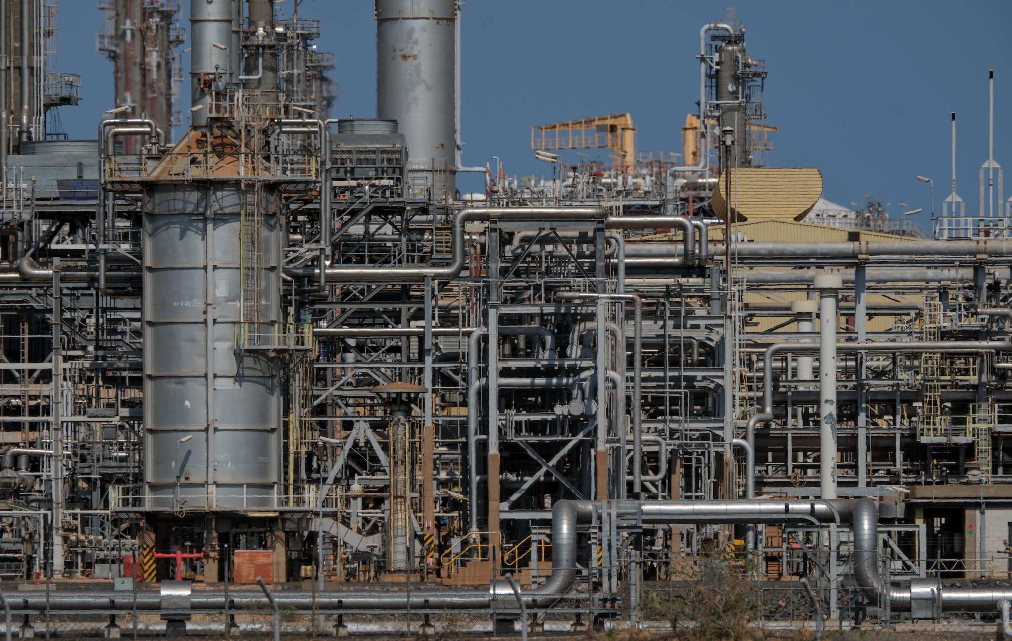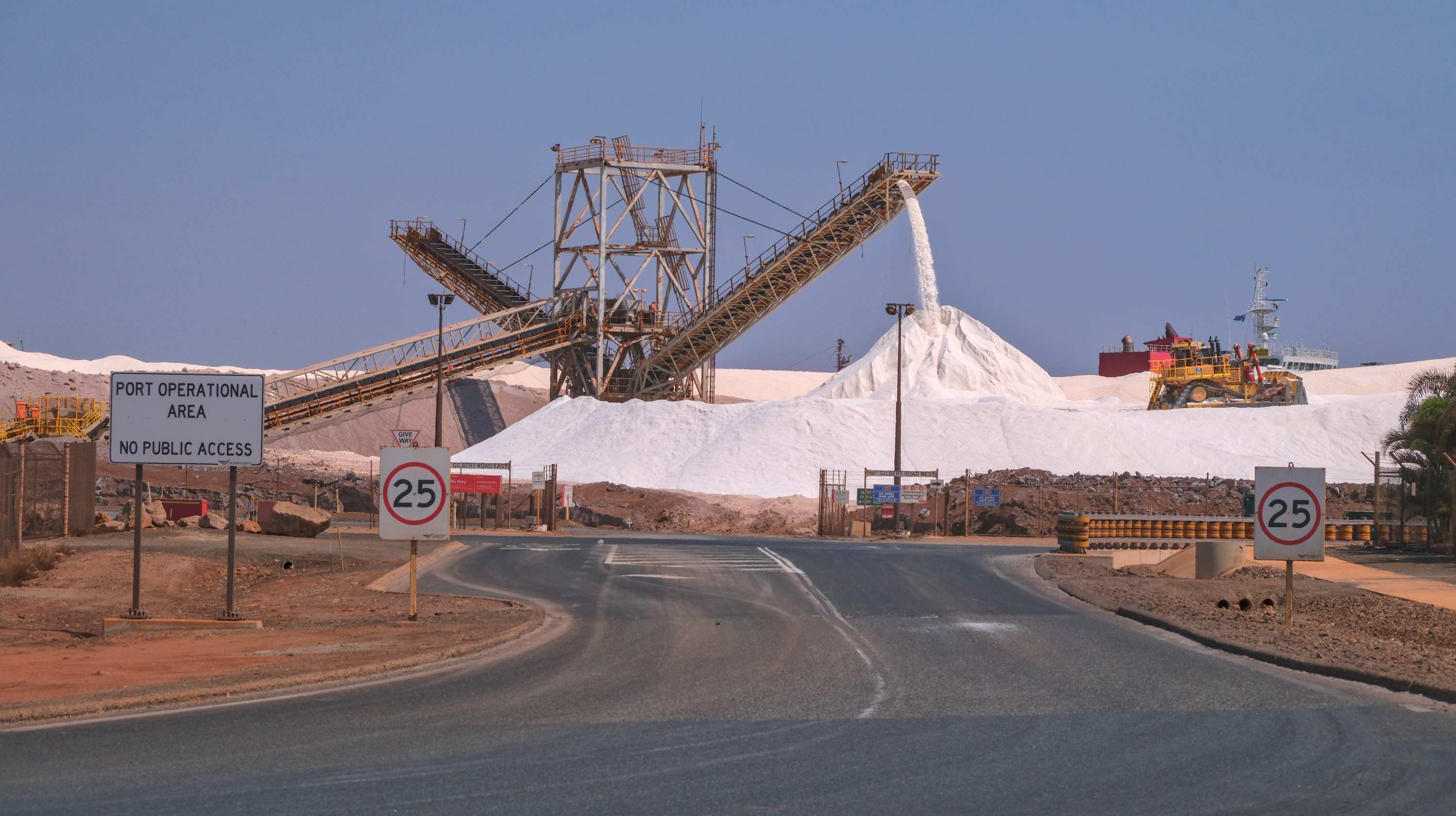 Der dritte große Eisenerzhafen in dieser Gegend ist 'Port Dampier'. Hier ist allerdings auf der 'Burrup Peninsula' die Aufbereitungsanlage für Gas, das vor der Küste gefördert wird, zu sehen.