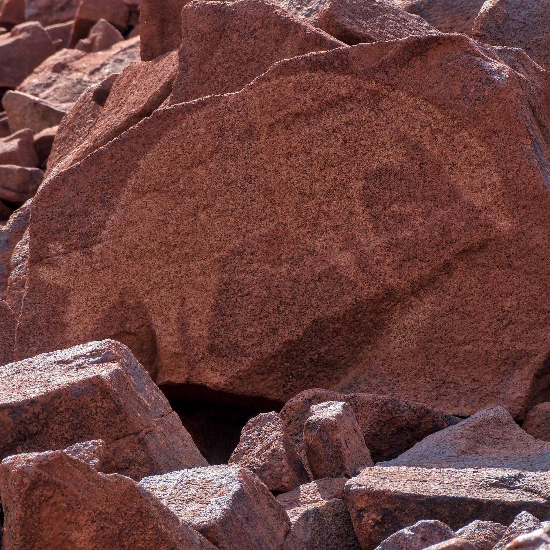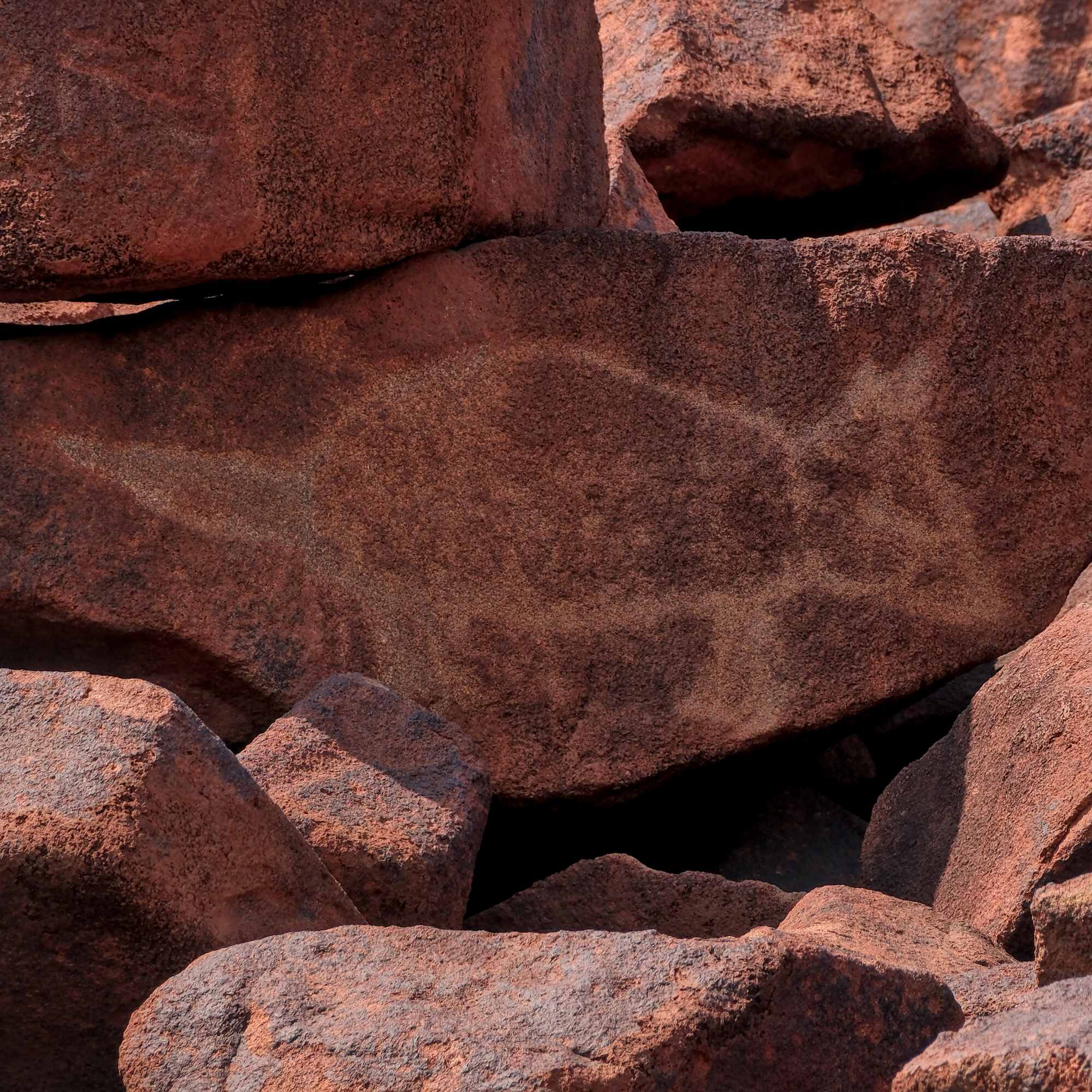 Ganz in der Nähe befinden sich viele 40.000 bis 50.000 Jahre alte Felsgravuren der Aboriginals. Diese beiden sind vermutlich ein Marrjuru (Quoll) und ein ausgestorbenes Mangguru (Fettschwanzkänguru).
