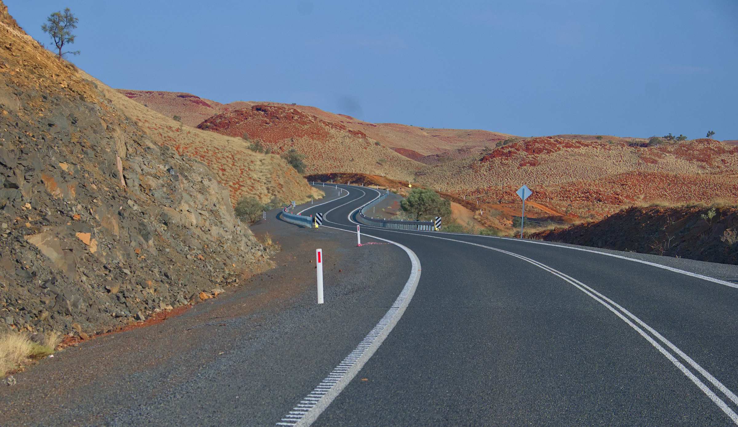Bei Roebourne sind wir hinauf nach 'Point Samson' abgezweigt, haben uns dort kurz umgesehen, waren auf dem nicht leicht zu findenden und nur mit Allrad erreichbaren Aussichtspunkt mit Blick auf das 'Cape Lambert' und direkt zu Füßen die Verladestation, bzw. den Hafen eines Minengiganten. Hier bringen Züge von gut zwei km Länge, gezogen von drei Loks, das Eisenerz heran.