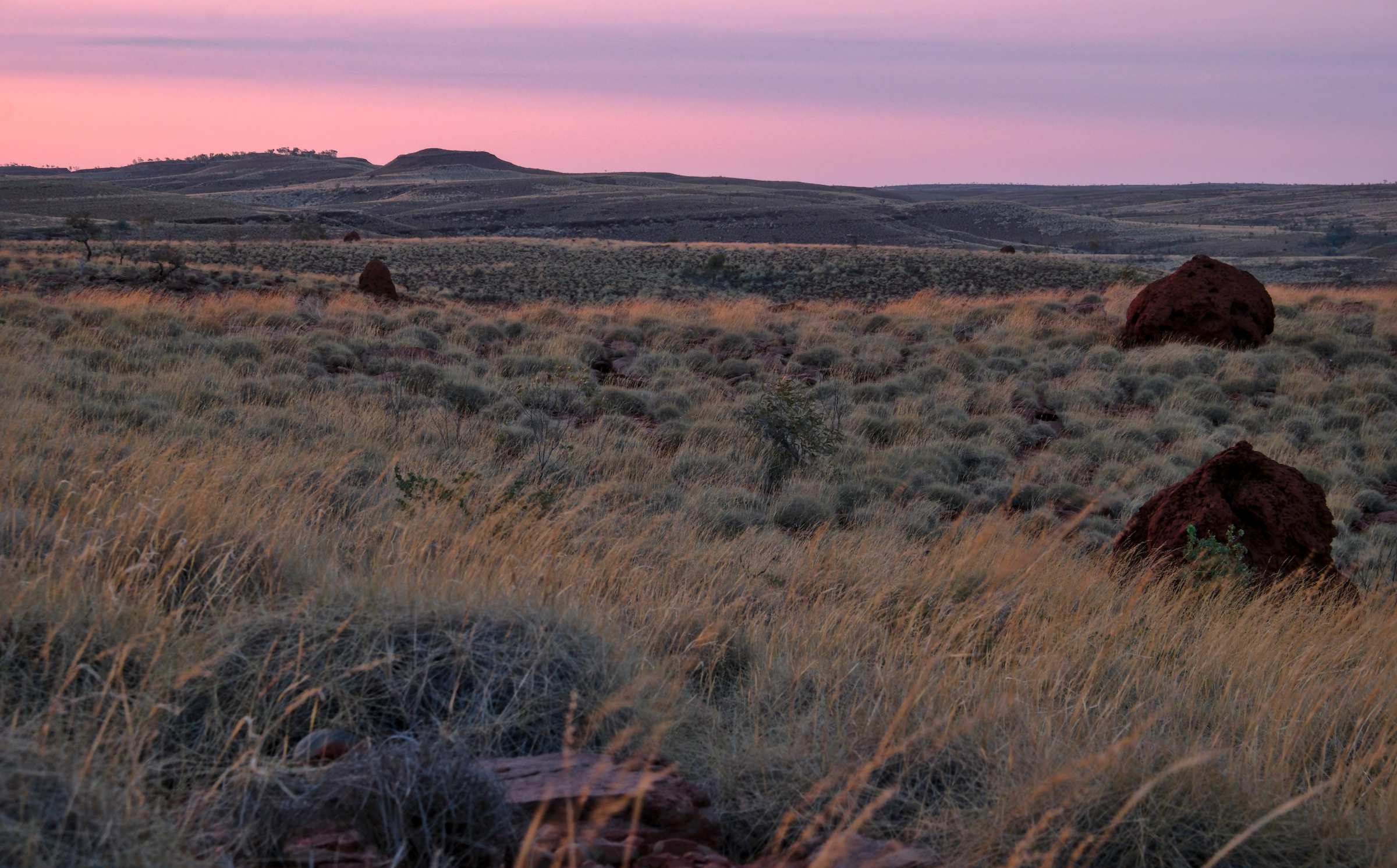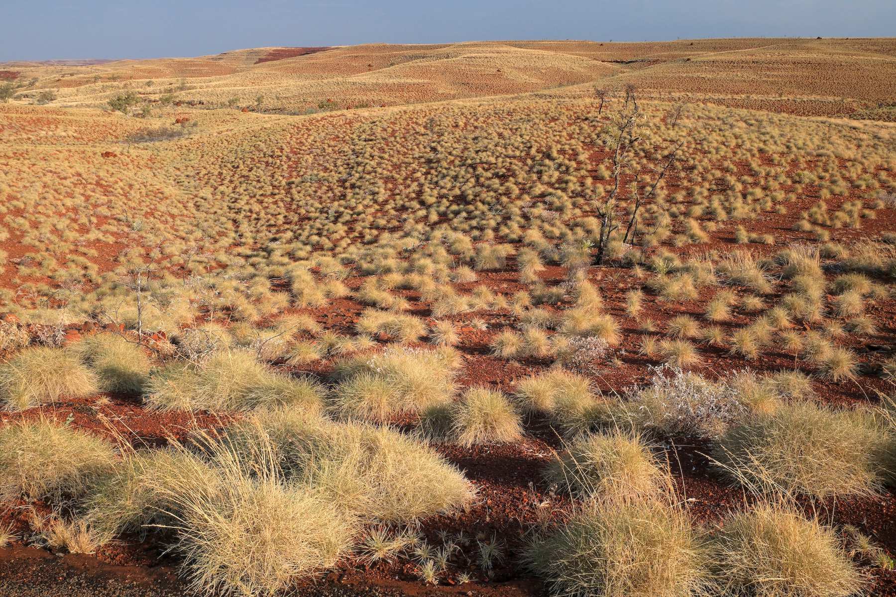 Gestern dann, nach Besuch der Burrup-Halbinsel, mit den riesigen Anlagen für die Weiterverarbeitung von Erdgas, das vor der Küste gefördert wird, und der Besichtigung von uralten Felsritzungen(?) der Aboriginals bei der 'Deep Gorge', Fahrt zum 'Millstream Chichester National Park'. Dort eher sanfte niedrig bewachsene Hügel in diversen Gelbgrünschattierungen, braune Felsen dazwischen, wunderschön.