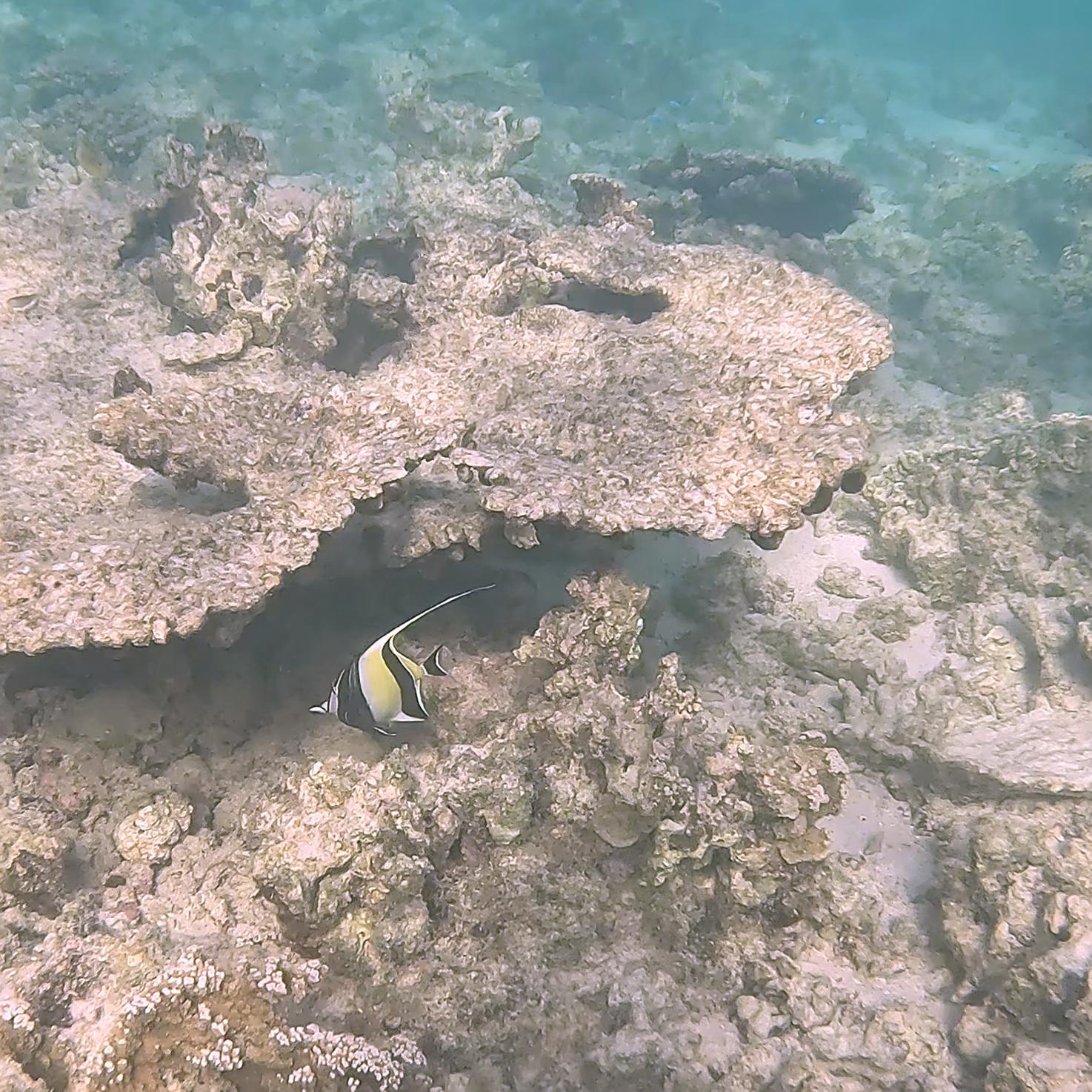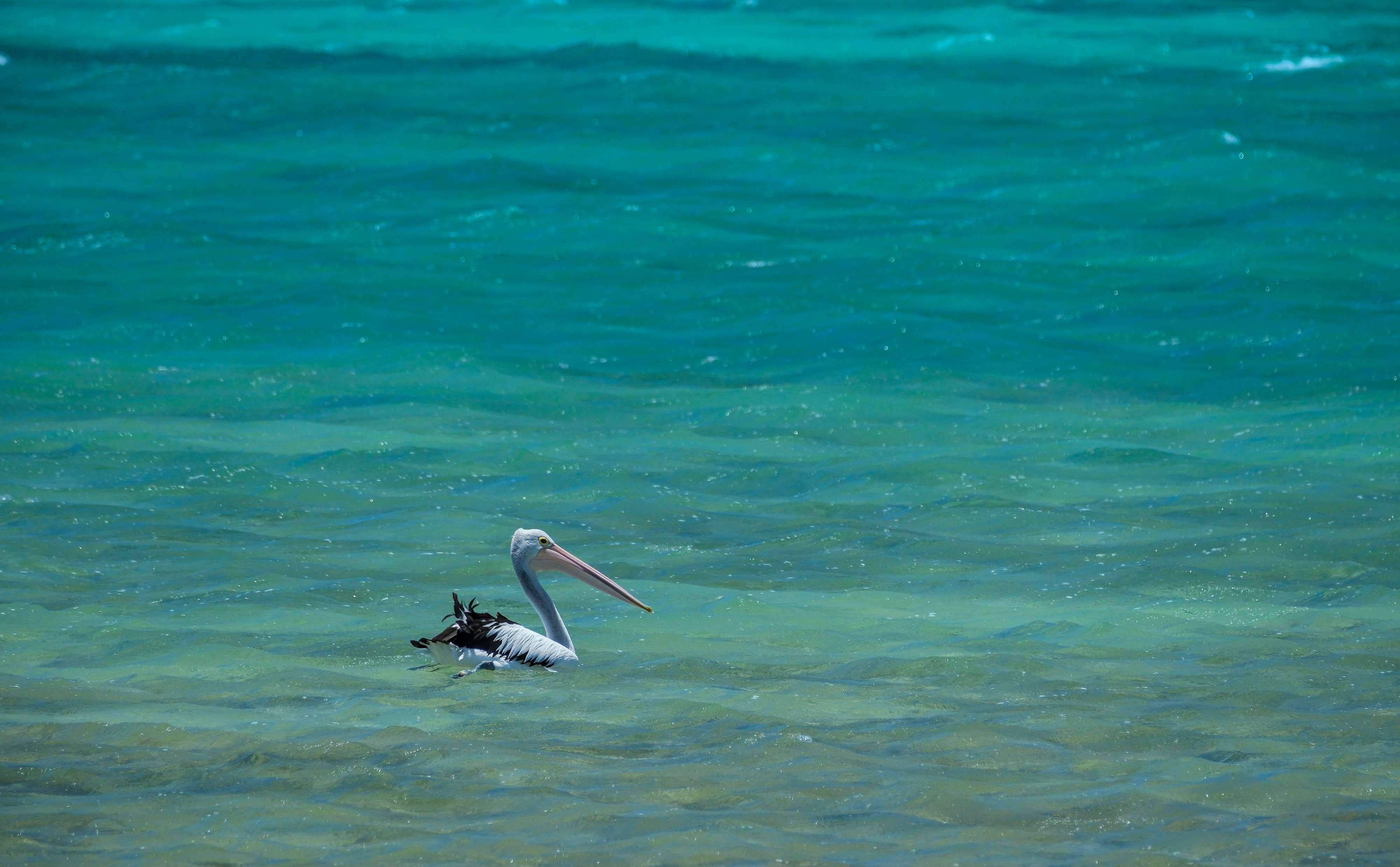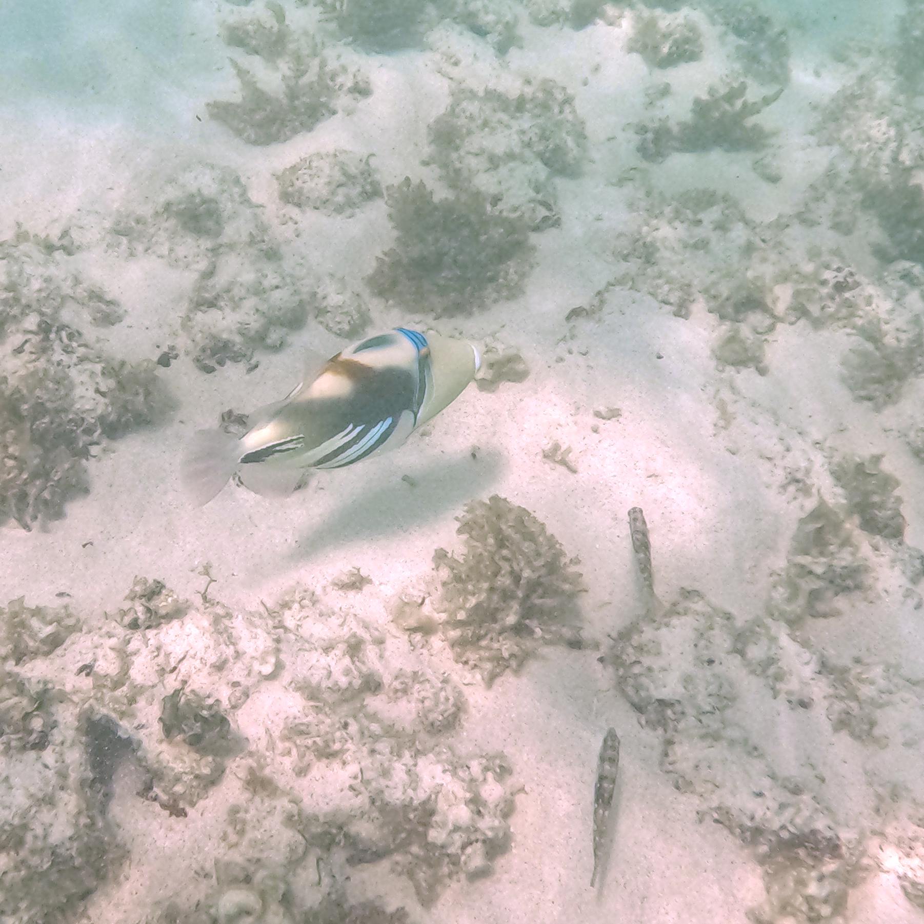 Später um die Ecke in der viel ruhigeren 'Turqoise Bay' treffen wir auf eine kleine (Grüne?) Schildkröte und sind begeistert.