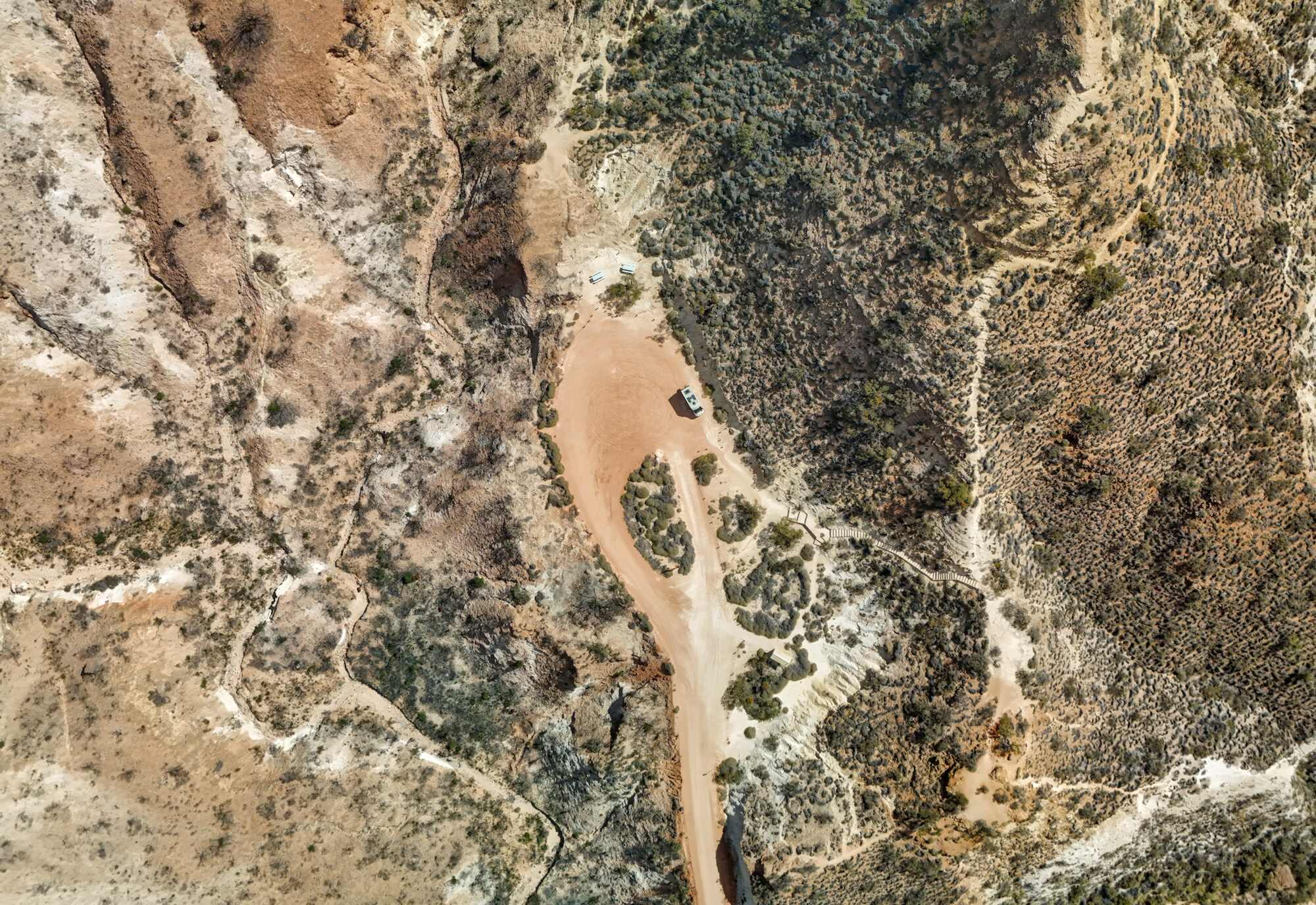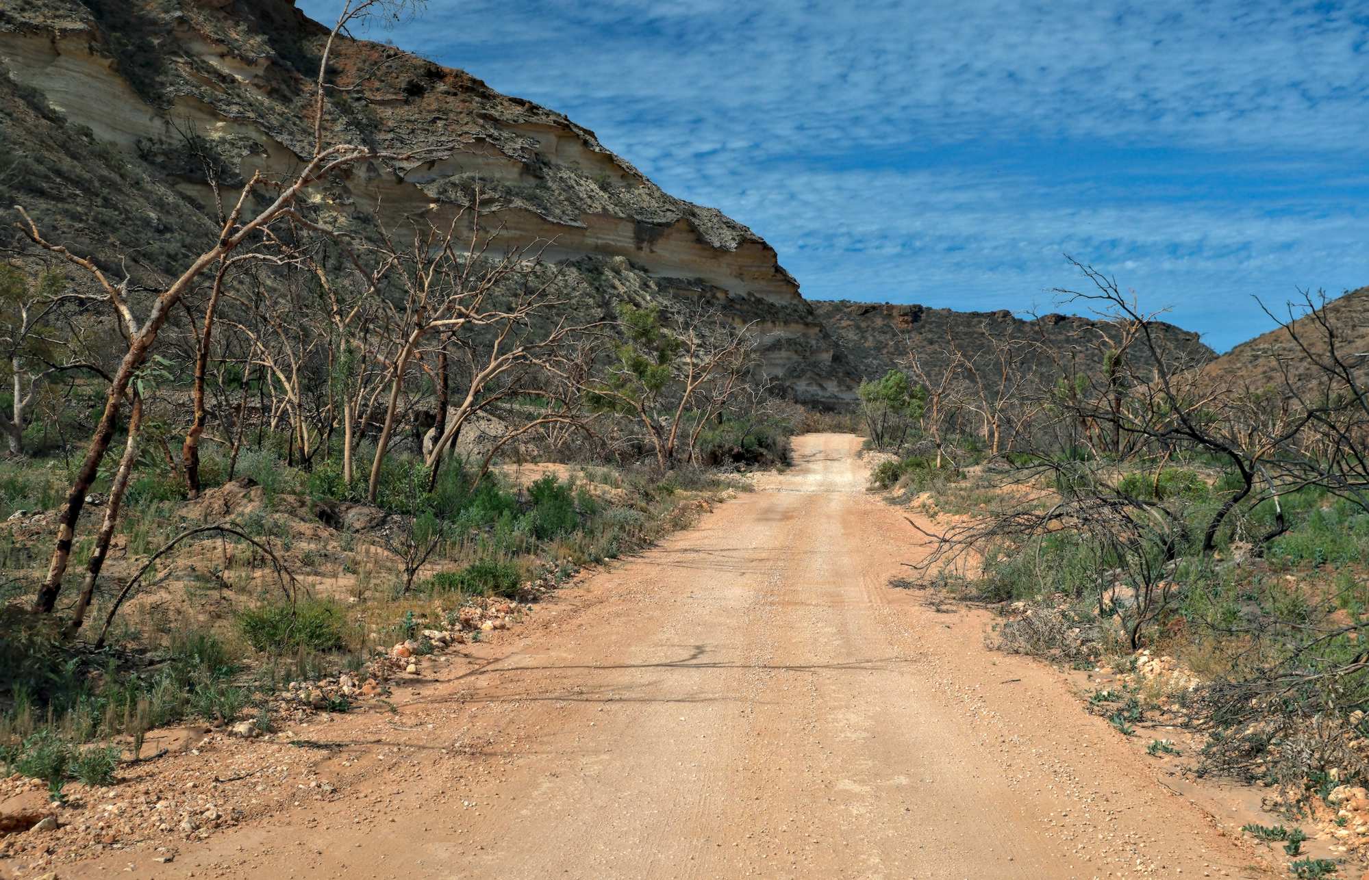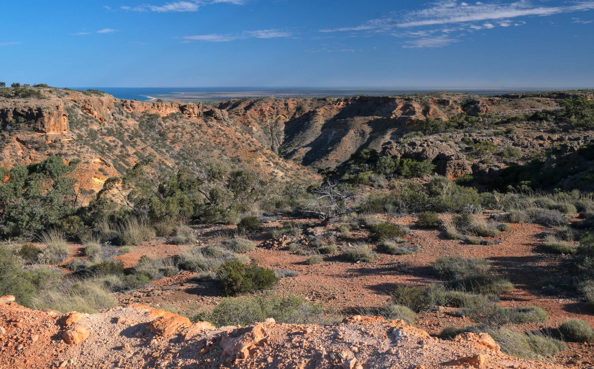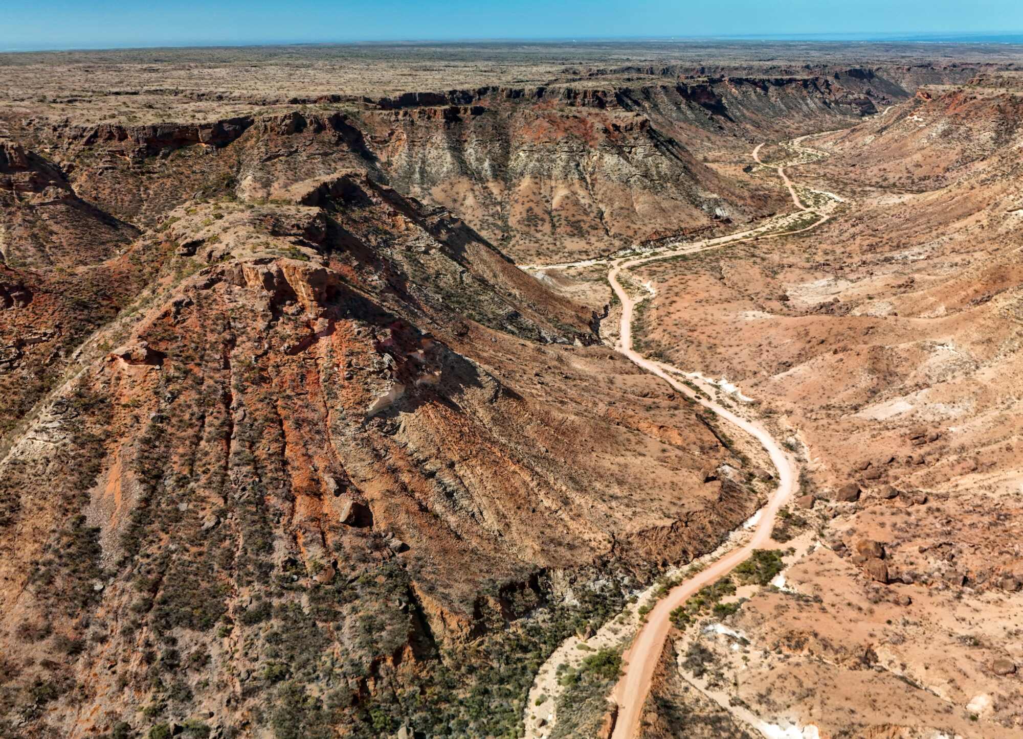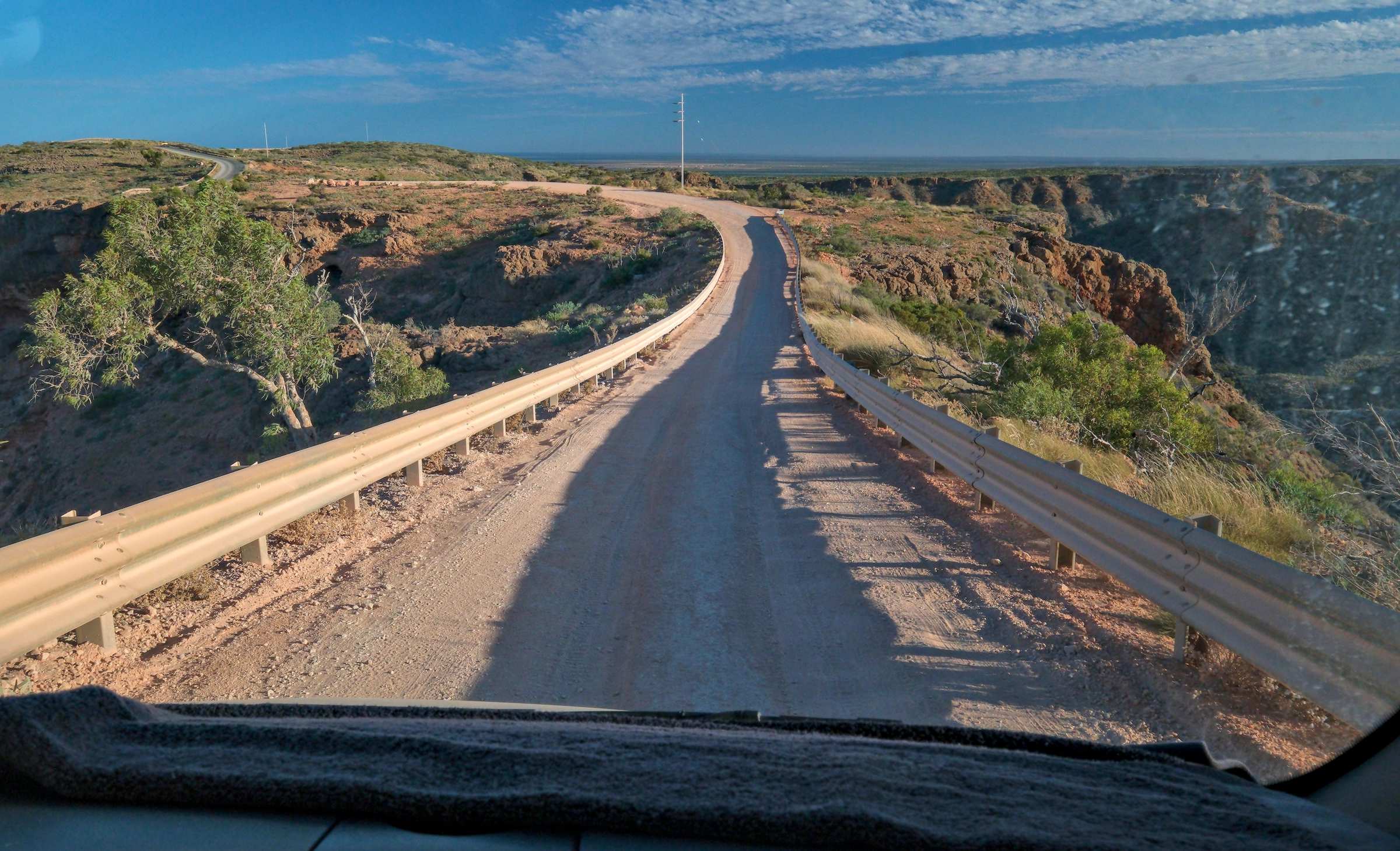 Auch die 'Charles Knife Road' fahren wir noch bis zu einer ehemaligen Explorationsbohrung, der diese Straße zu verdanken ist. Diesmal führt der Weg auf dem Plateau entlang und gibt tolle Blicke in die Schluchten frei.