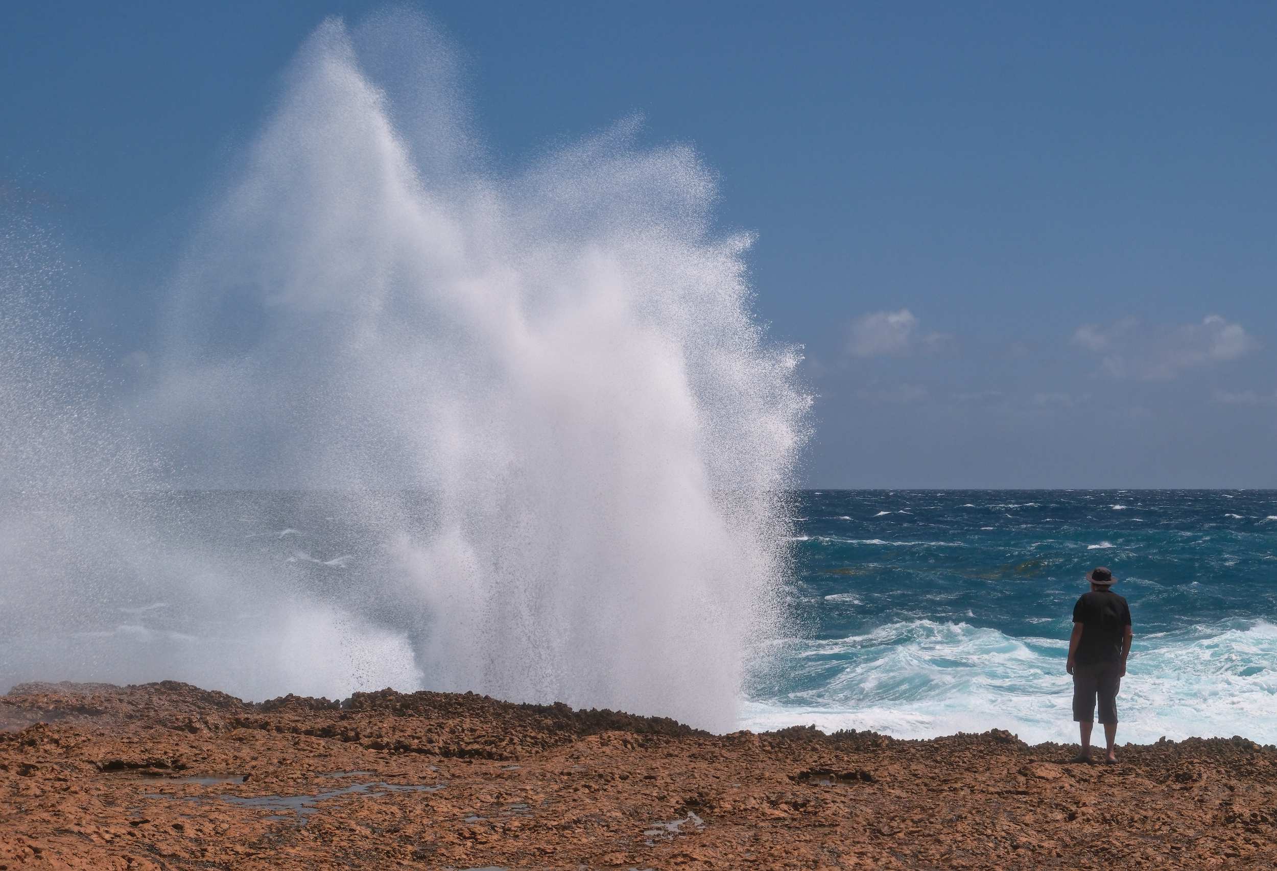 Das 'Carnarvon Blowhole' faucht und bläst die Gischt dutzende Meter in den Himmel.