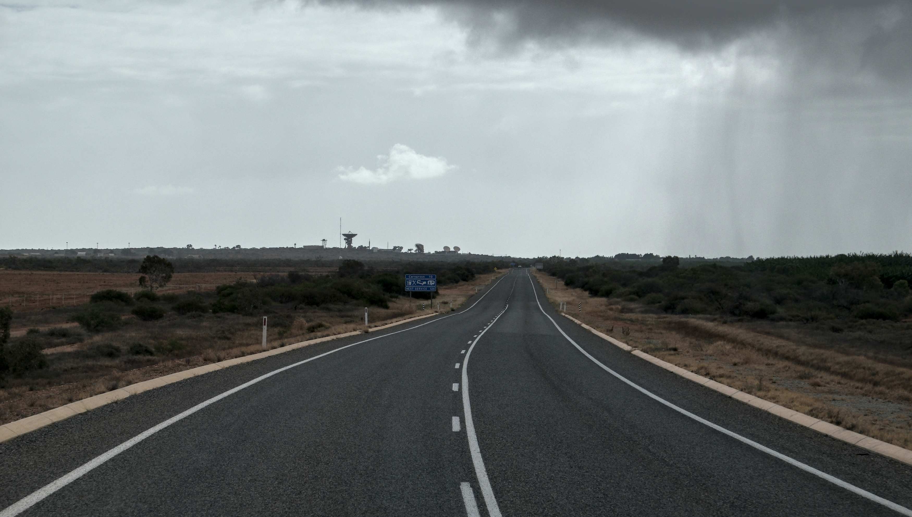 Ein kurzer Wolkenbruch, für uns gefühlt nach Monaten, bei der Einfahrt nach Carnarvon.