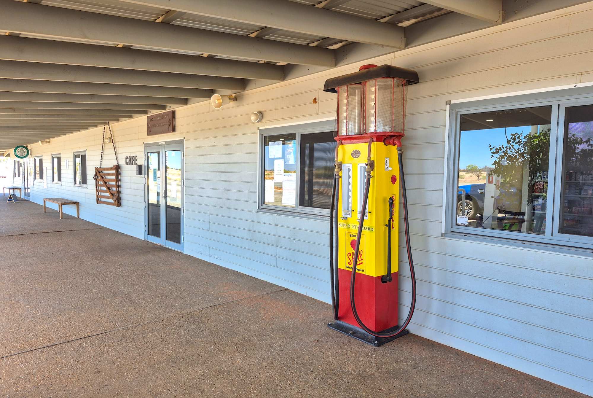 Neuer Pub, mit sehr guten 'Chicken Schnitzel', alter Zapfsäule und schönem Campingplatz in 'Gascoyne Junction'.
