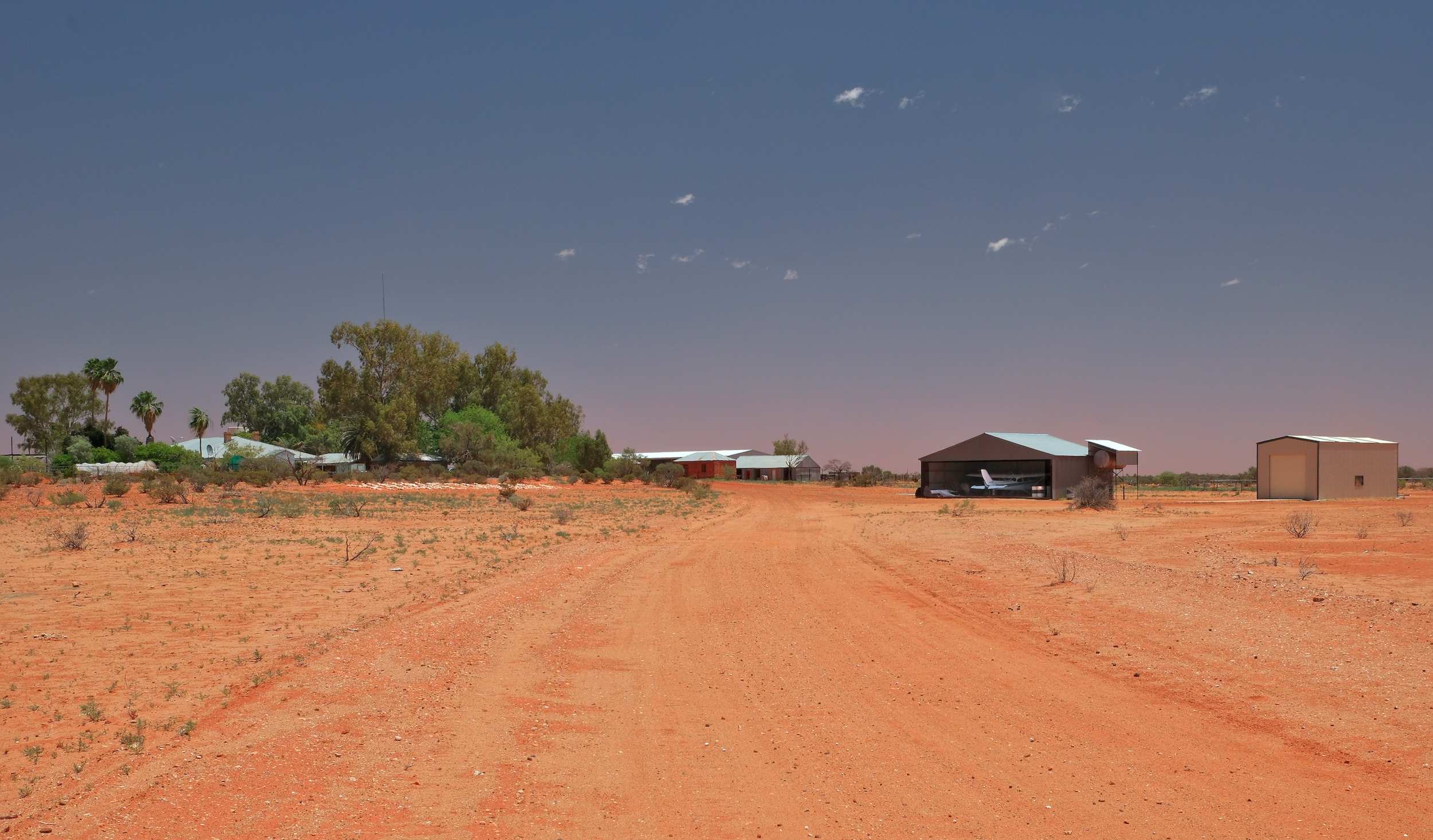 Eine der vielen Farmen im Outback, weit ab von den nächsten Siedlungen. Da hat man dann schon einen Flieger in der Garage stehen.
