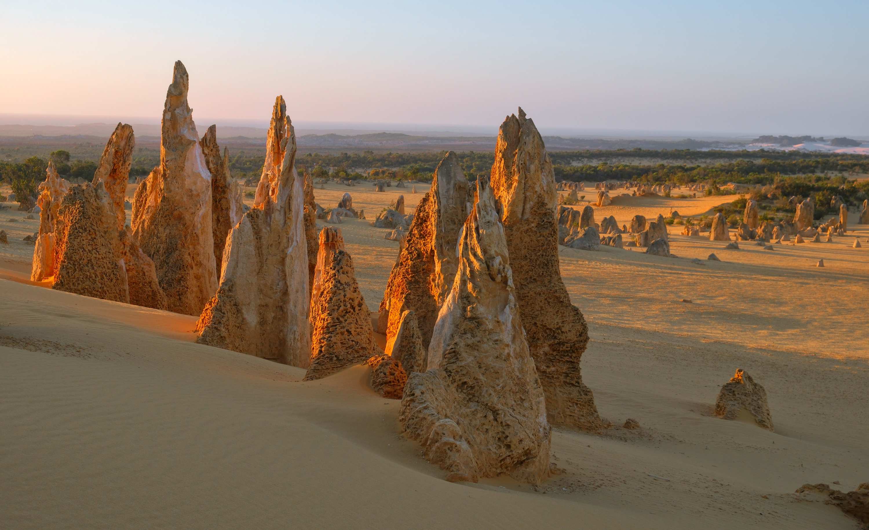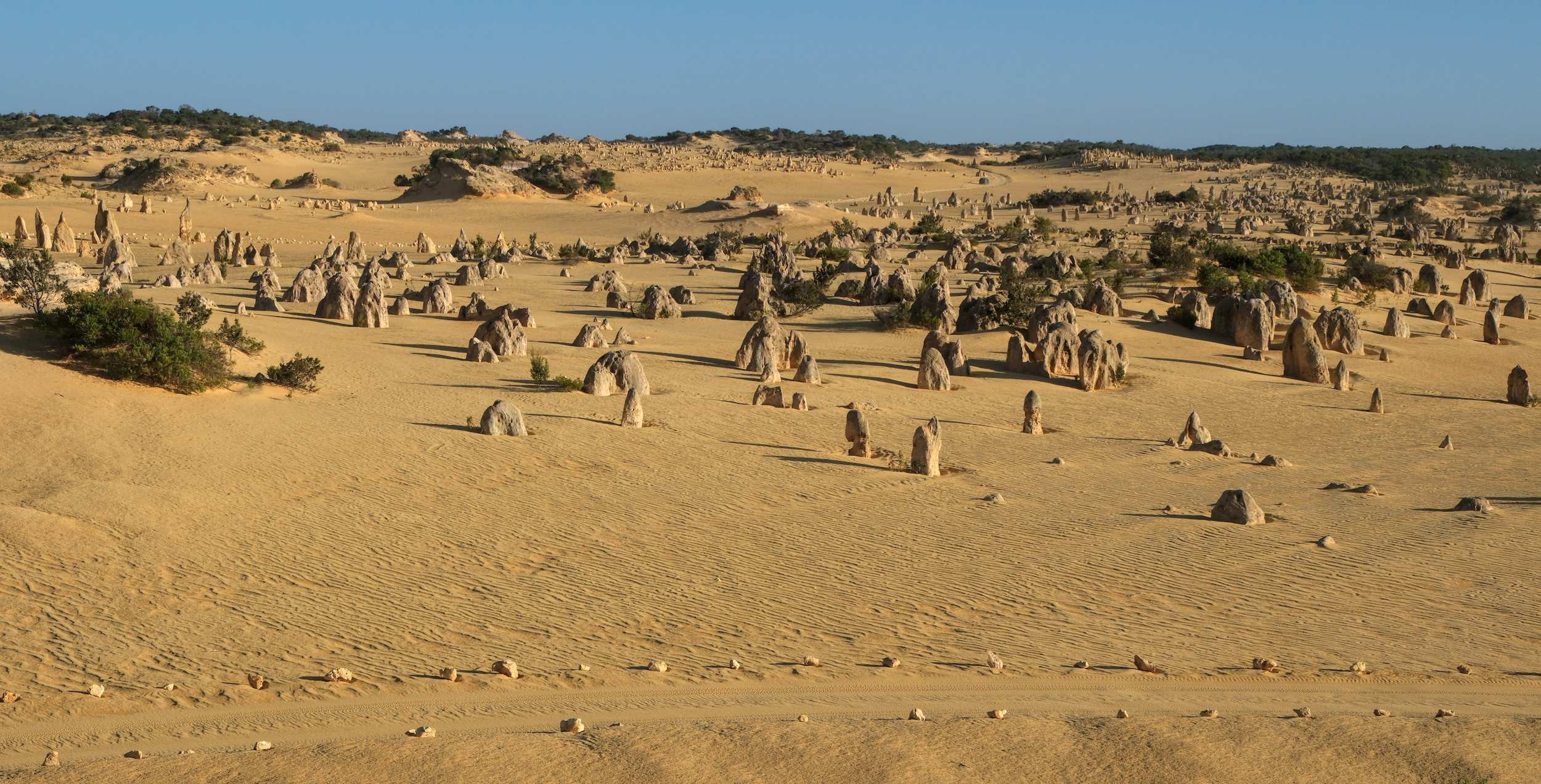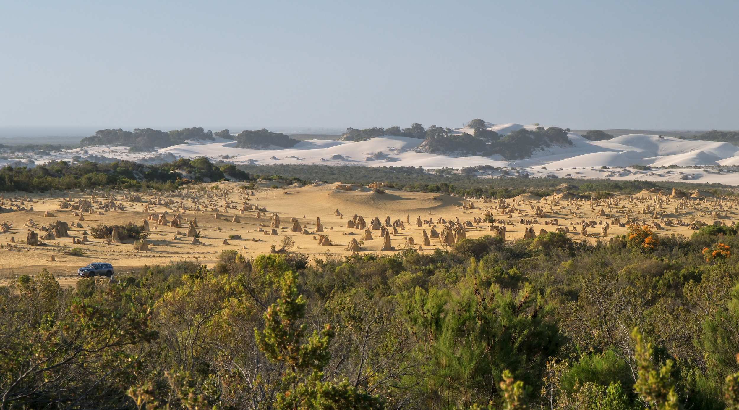 Am folgenden Tag, mit einer langen, wieder küstennahen Etappe, wo man überall auch viel Zeit verbringen könnte, den 'Nambung National Park' angesteuert. Dort haben wir uns die tausenden Kalksteinsäulen (Pinnacles), die dort einfach so "herumstehen", angesehen. Wir waren so begeistert, dass wir in der Abenddämmerung dreimal auf dem Rundkurs herumfuhren, noch bis spät in die Nacht dort blieben und die Sterne bewundert haben.