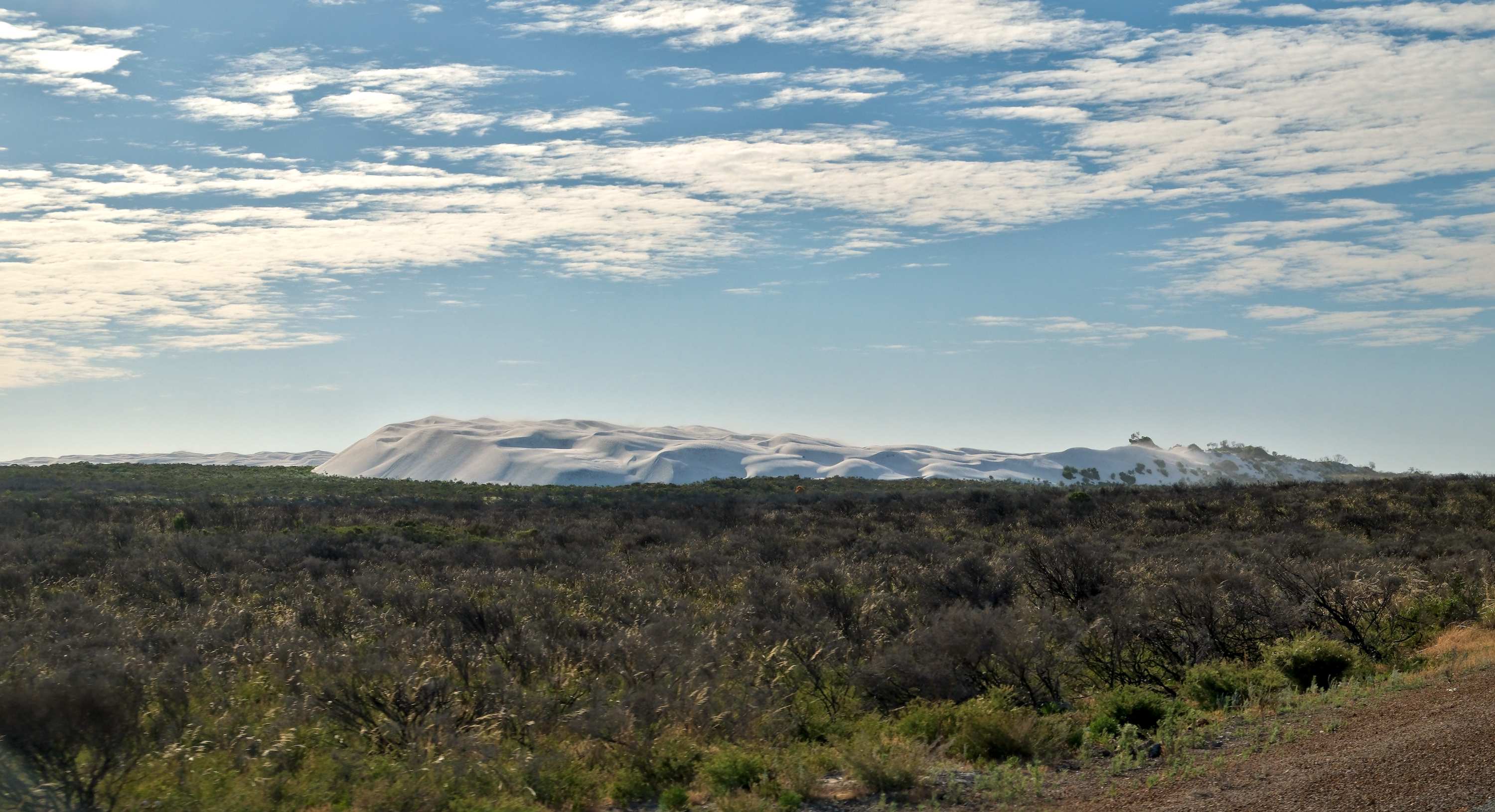 An der Küste entlang immer wieder große Dünen über die der Wind vom Meer her fegt.