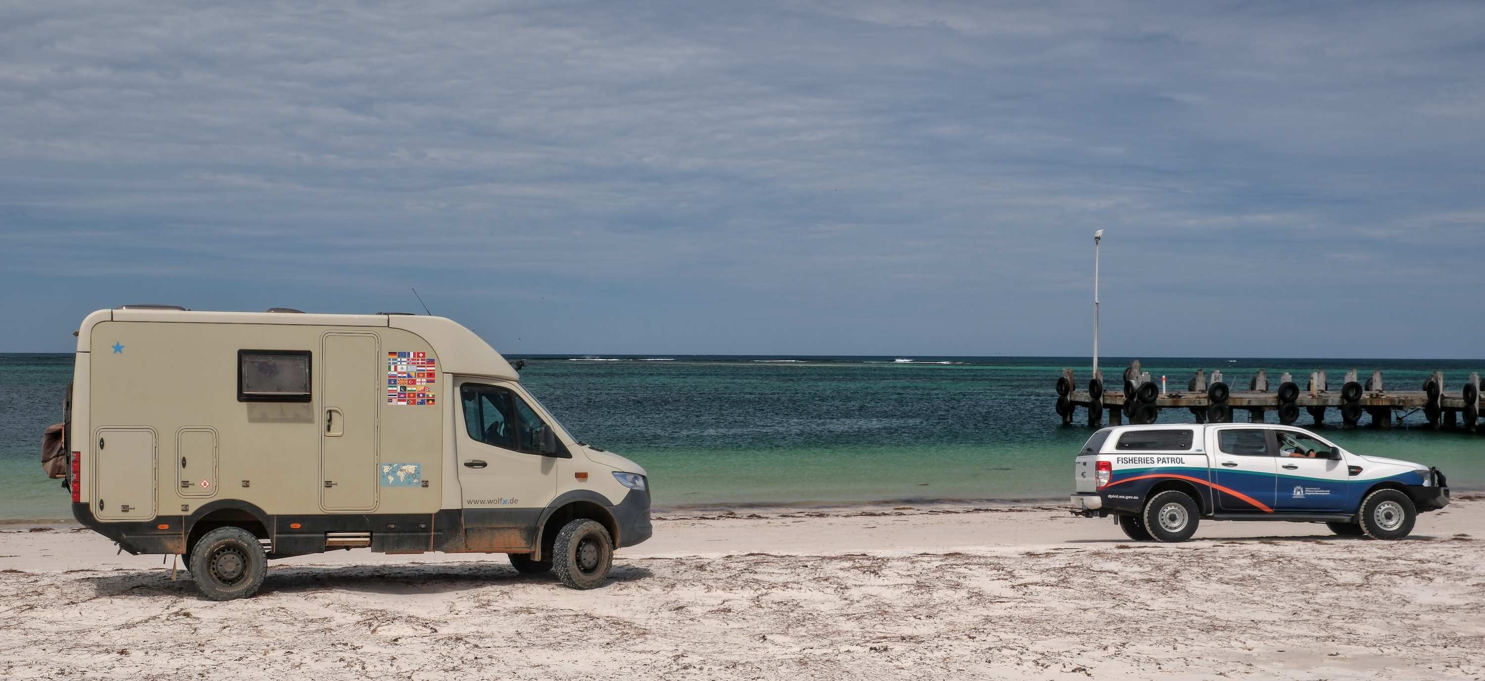 In Lancelin frühstücken wir angenehm in Bertha auf dem Strand.