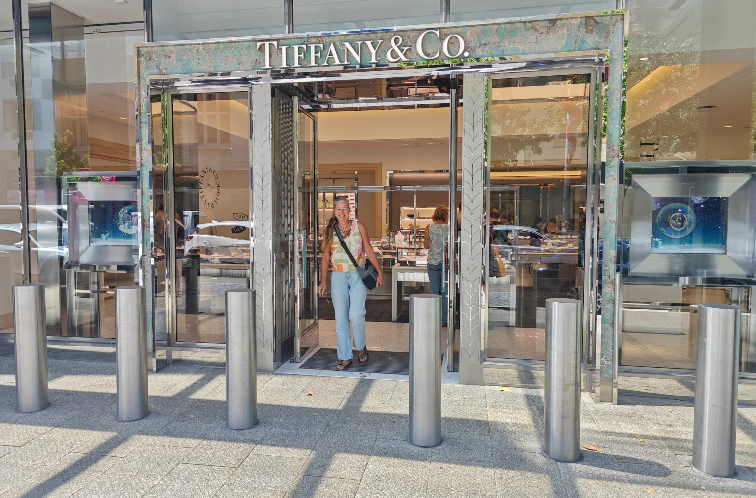 Direkt dem Hotel gegenüber einer von Ulrikes Lieblingsläden, was man unschwer an ihrem strahlenden Lächeln ablesen kann.