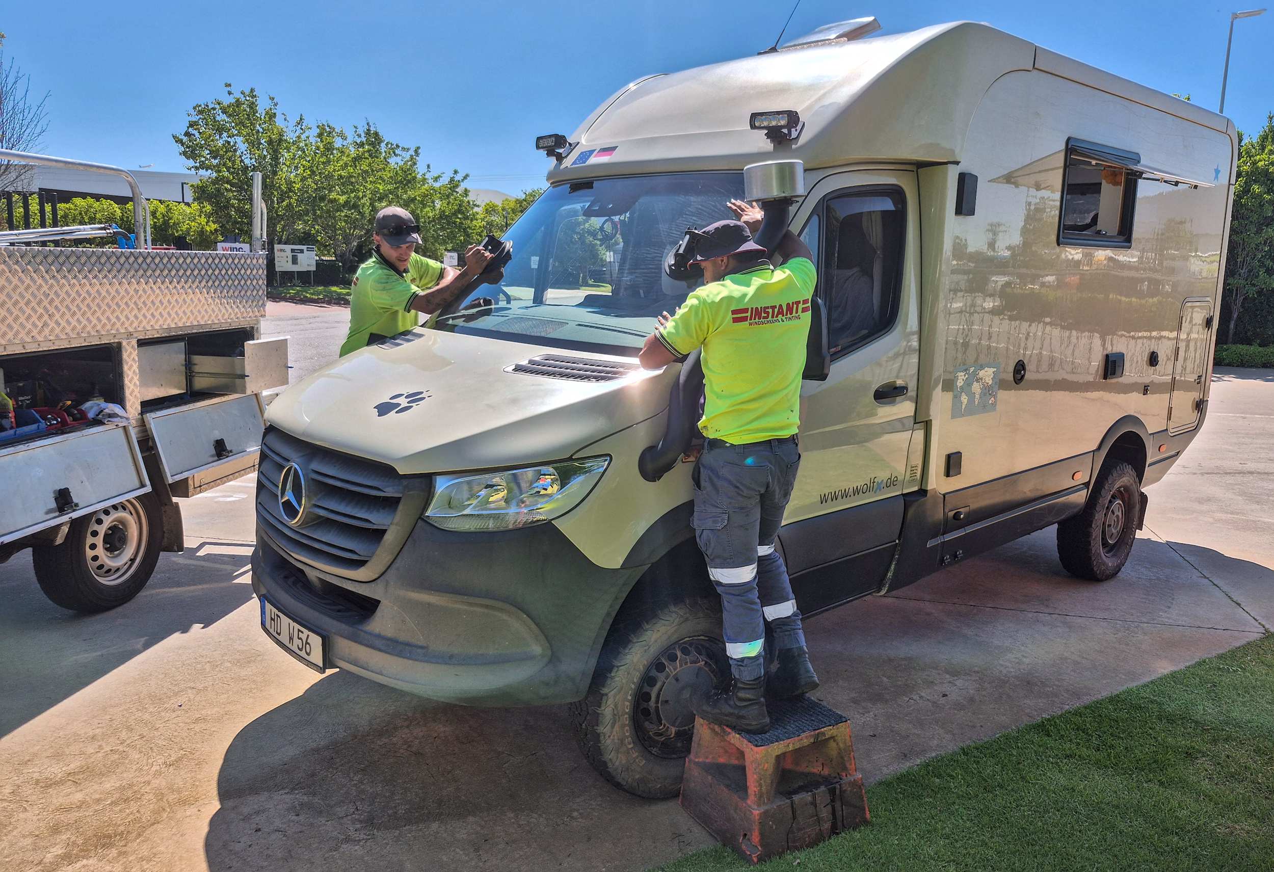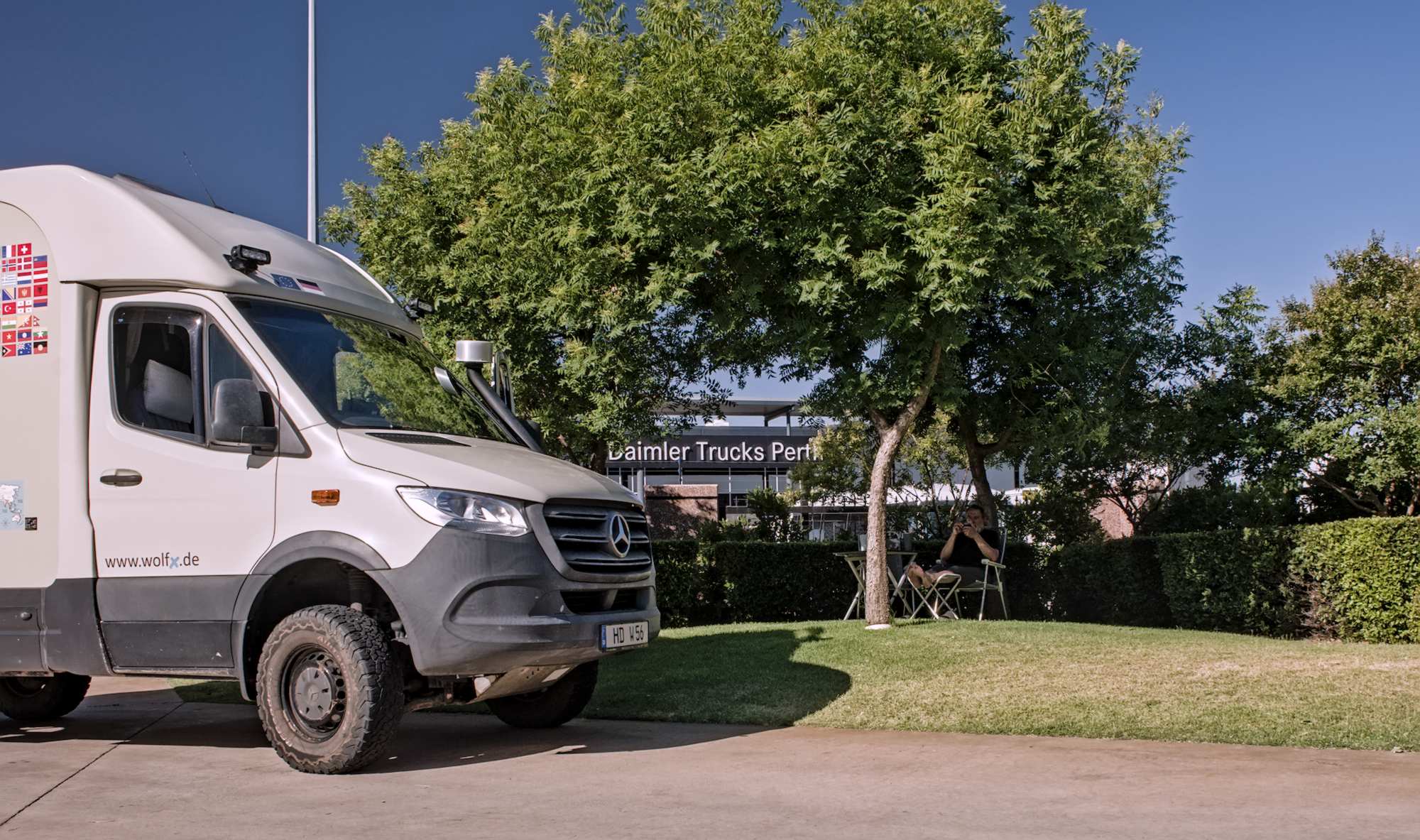 Dann mussten wir nach Perth, weil ein Termin in der Mercedeswerkstatt vereinbart war und vorher noch ein paar Dinge geklärt werden sollten. Auch ein Reifenwechsel wurde arrangiert und postlagernde Pakete endlich abgeholt.