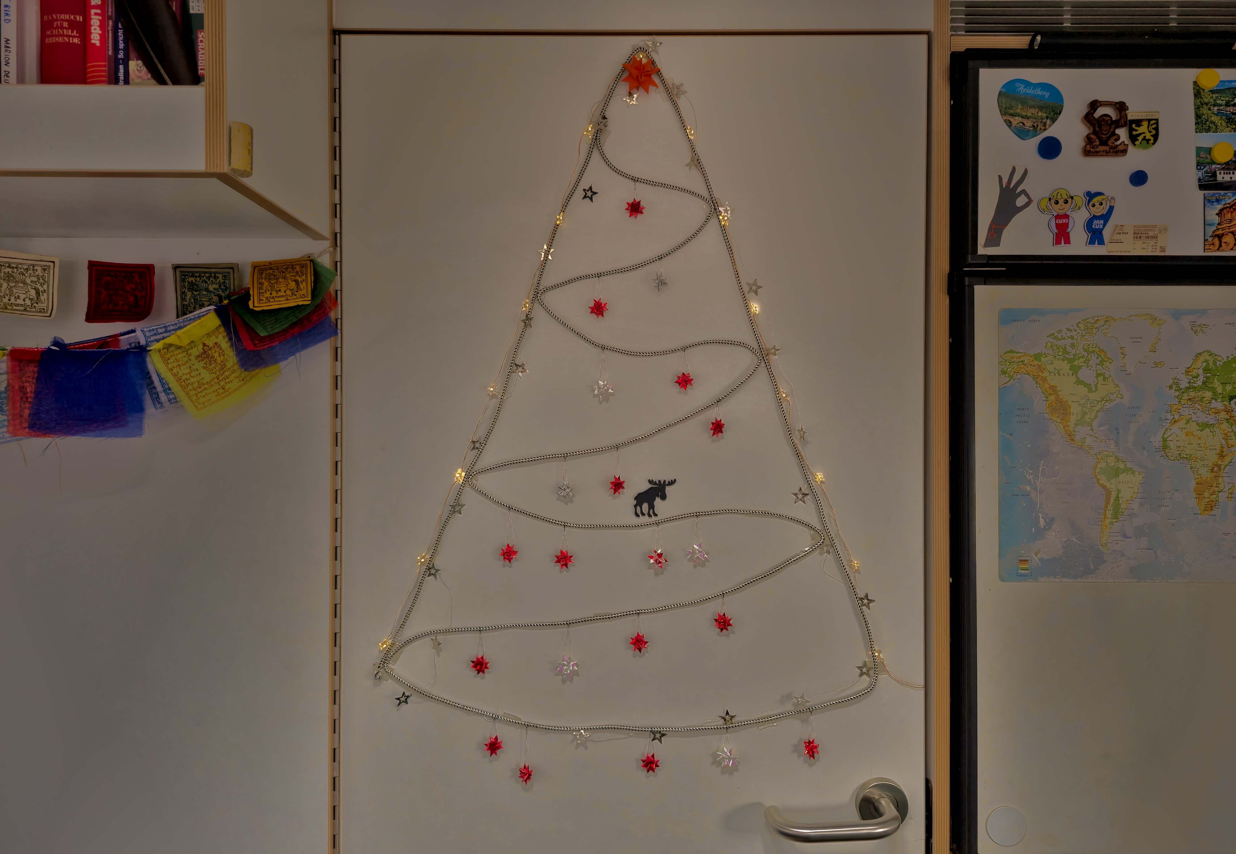 Ulrike hat uns einen Weihnachstbaum an die Durchgangstür gezaubert.