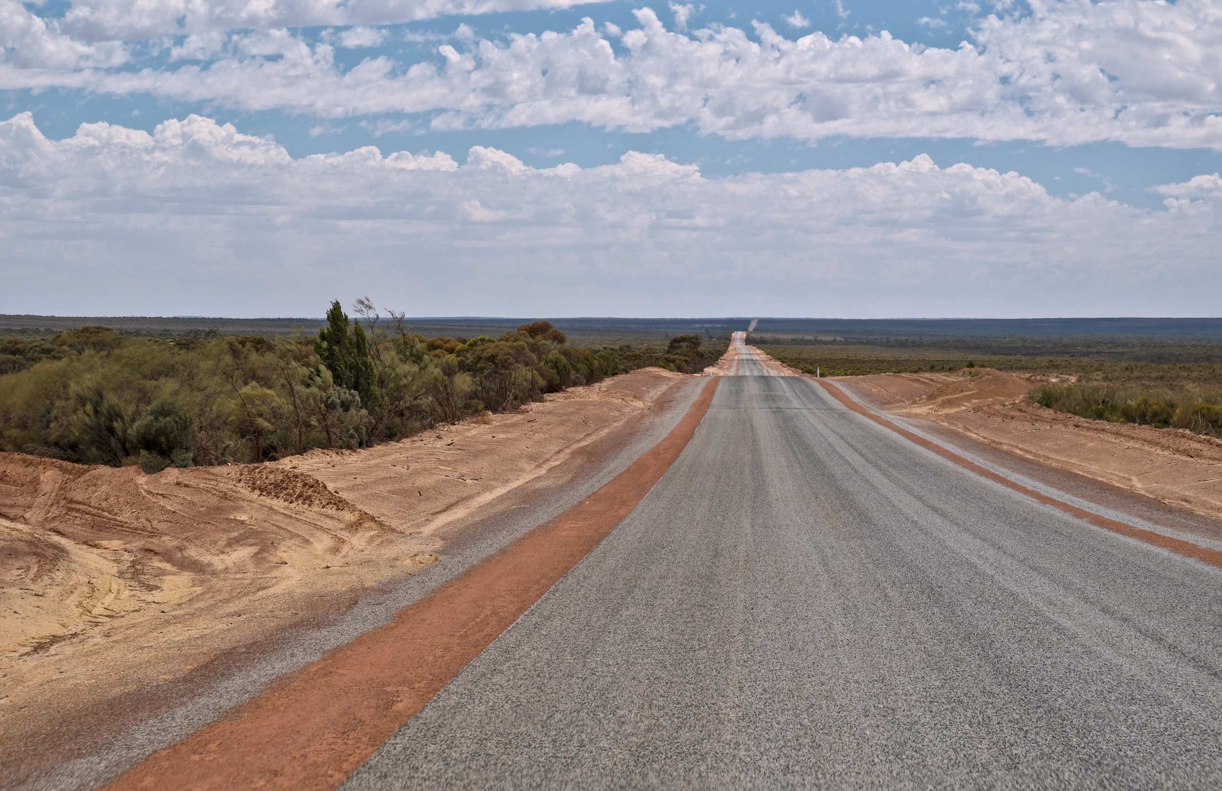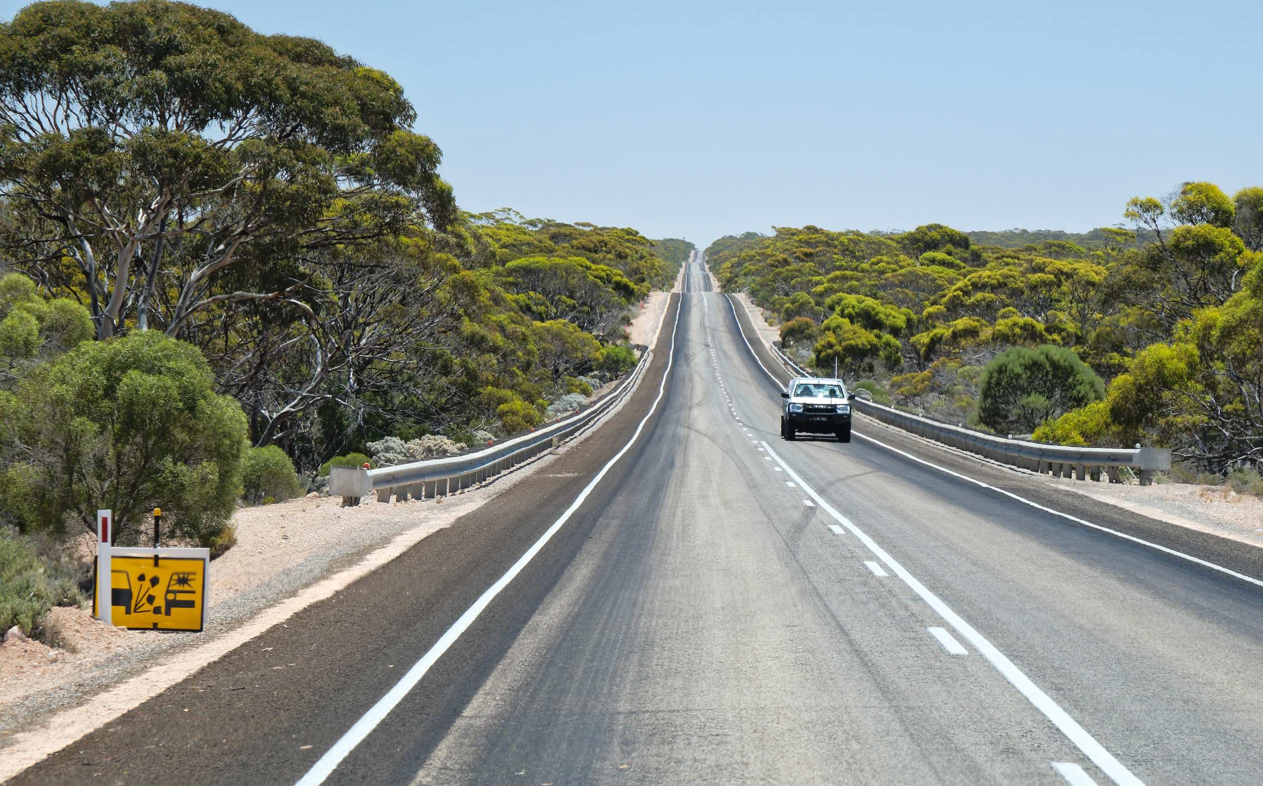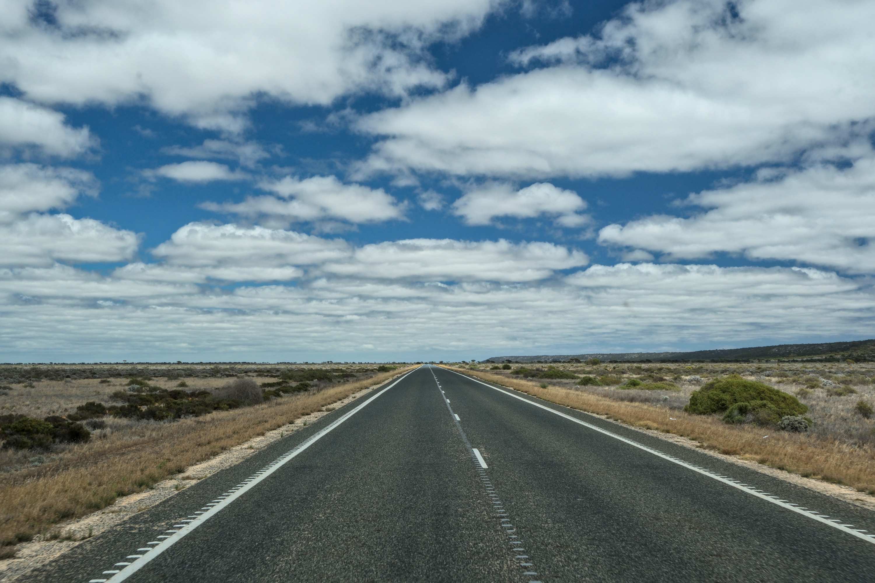 Hier noch durch üppige Vegetation, dann über die 'Nullarbor (lat. für kein Baum) Plain (Ebene)'. Eine riesige Karstfläche.
