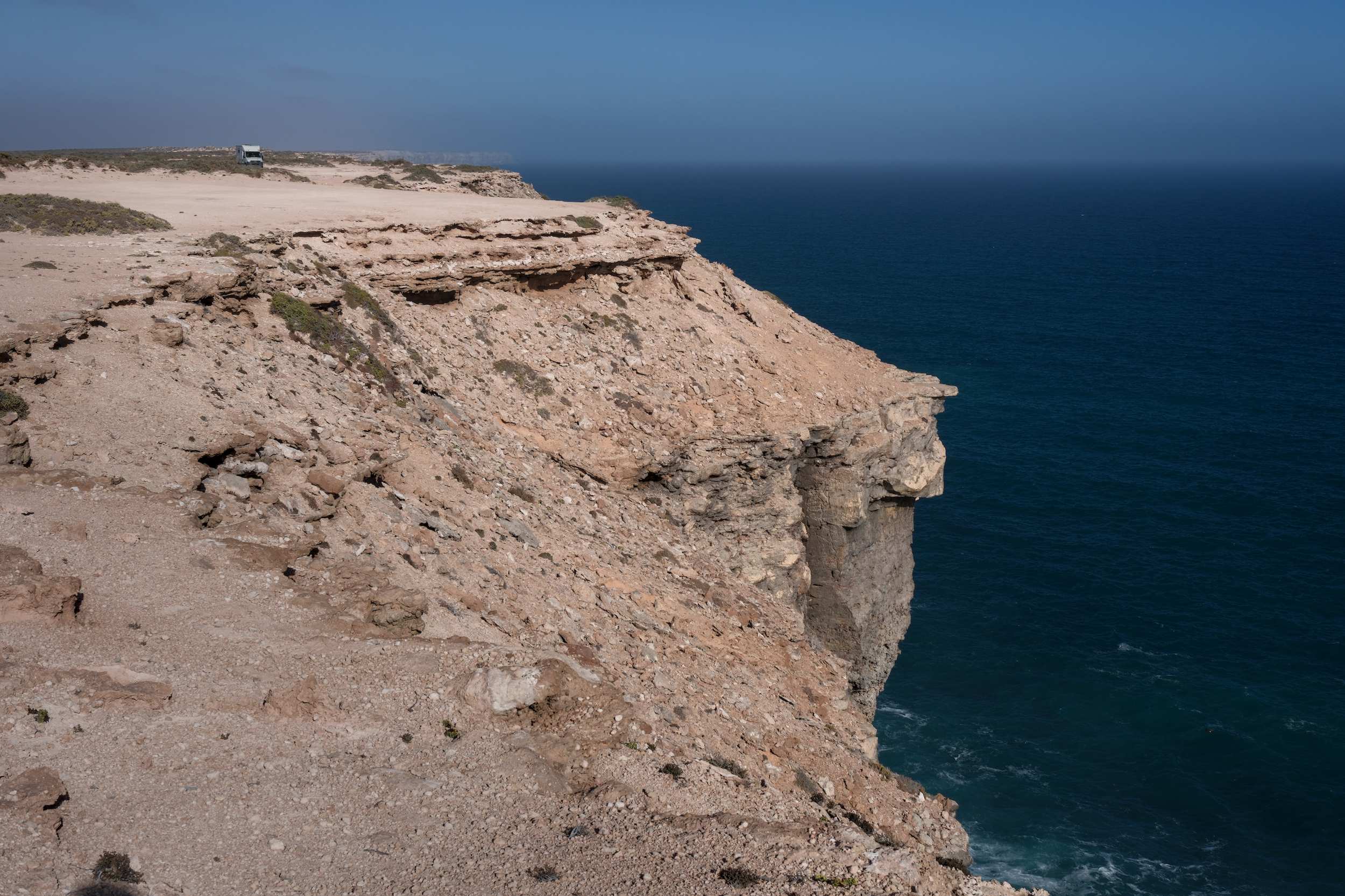 Über Penong, mit der sehenswerten Windradsammlung, sind wir zu einem Aussichtspunkt an der beginnenden Steilküste gefahren, wo wir übernachteten. Schon hier toller Blick auf ebendiese.