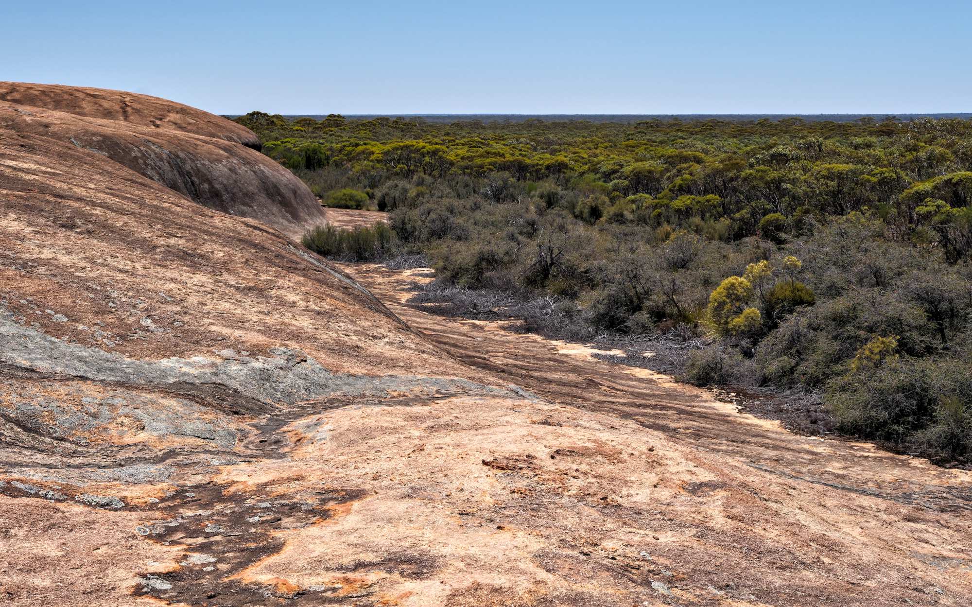 Gleich nebenan der 'McDermid Rock', eine der großen Granithalbkugeln, die sich hier vereinzelt und wundersam aus der Ebene herausheben.