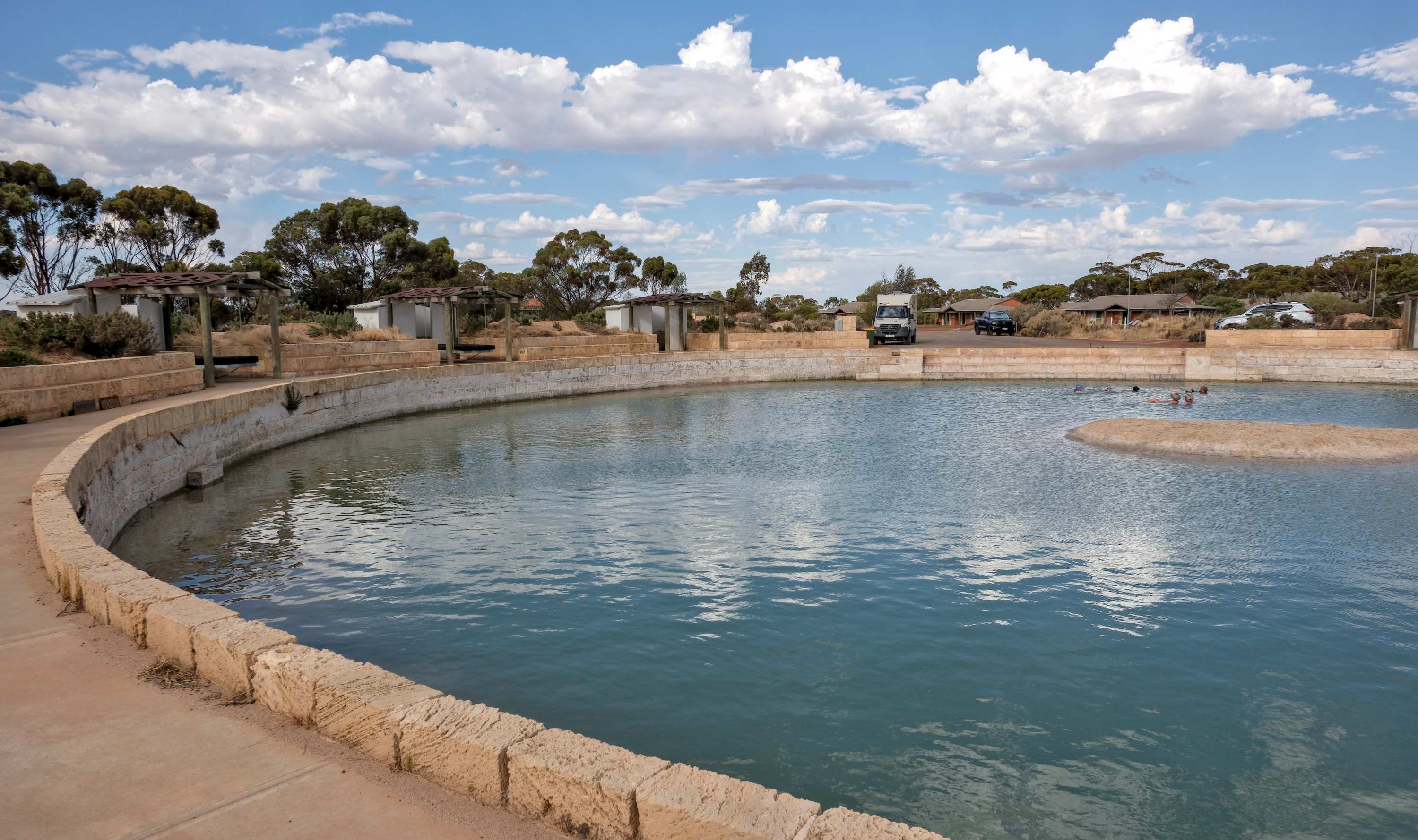 Wir waren dort zwei Tage, sind im großen Pool mit über 30% Salzgehalt "geschwebt" und haben den berühmten 'Wave Rock' (Wellenfels) bestaunt.