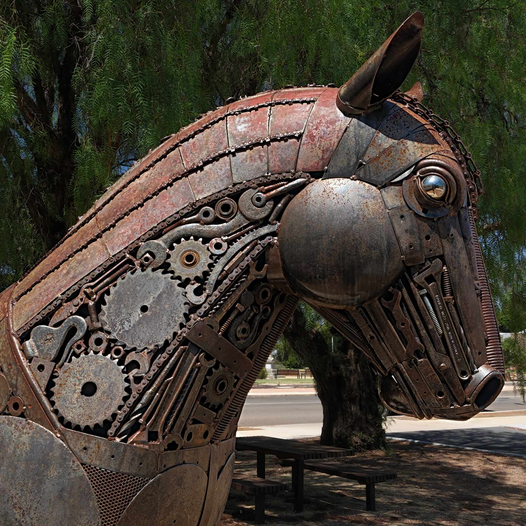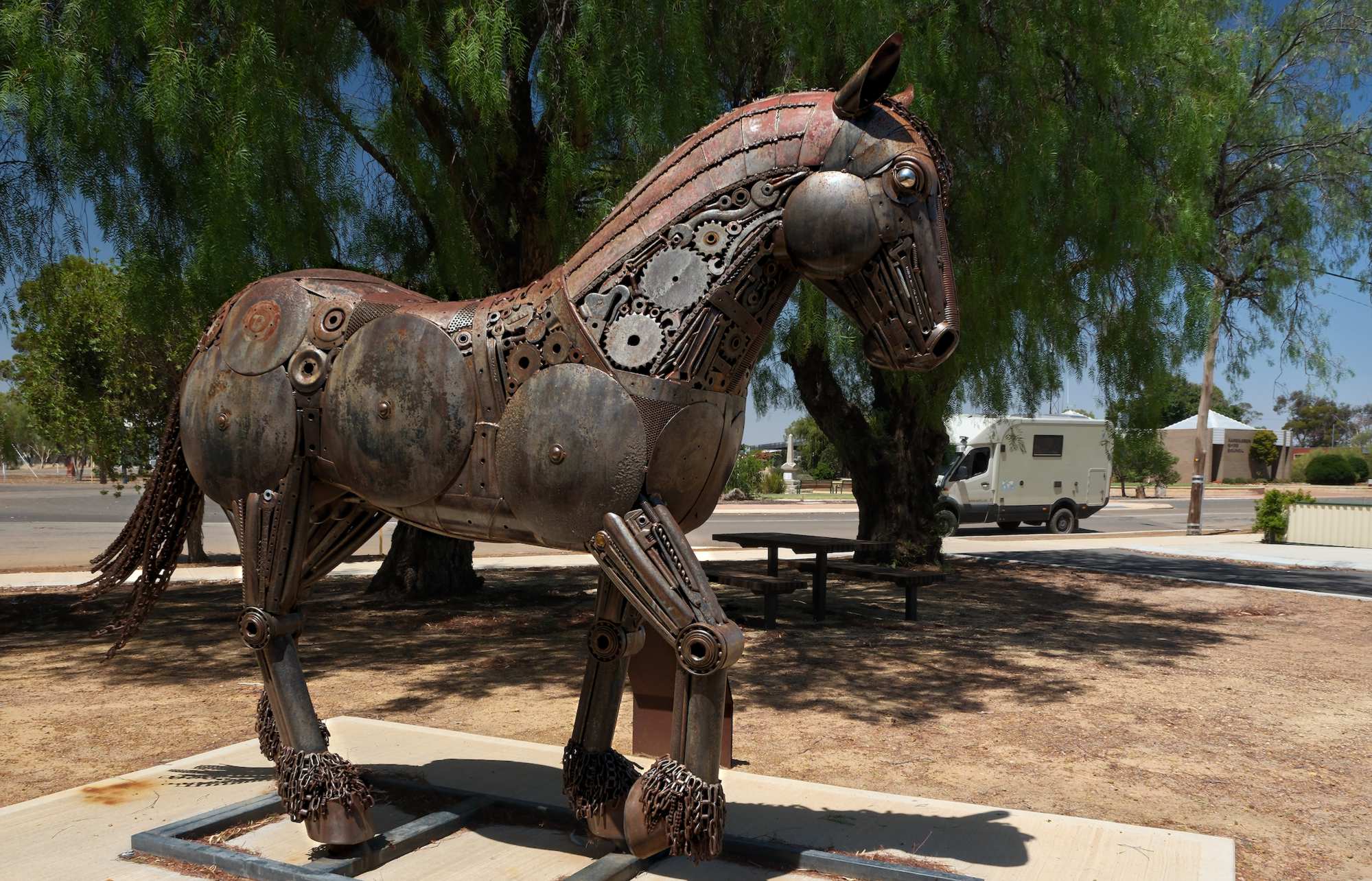 Das 'Draught Horse (Brauereipferd)' in Narembeen vom Metallkünstler Jordan Sprigg.