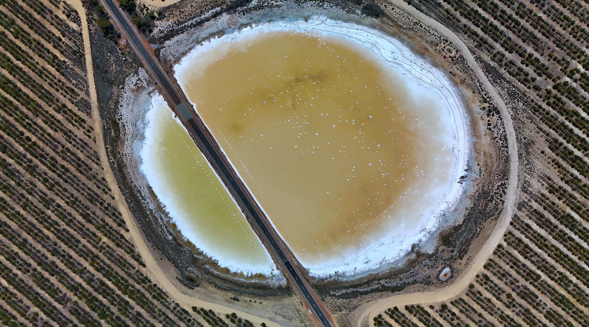 Der farbenwechselnde 'Pink Lake' (Rosa See) in der Nähe.