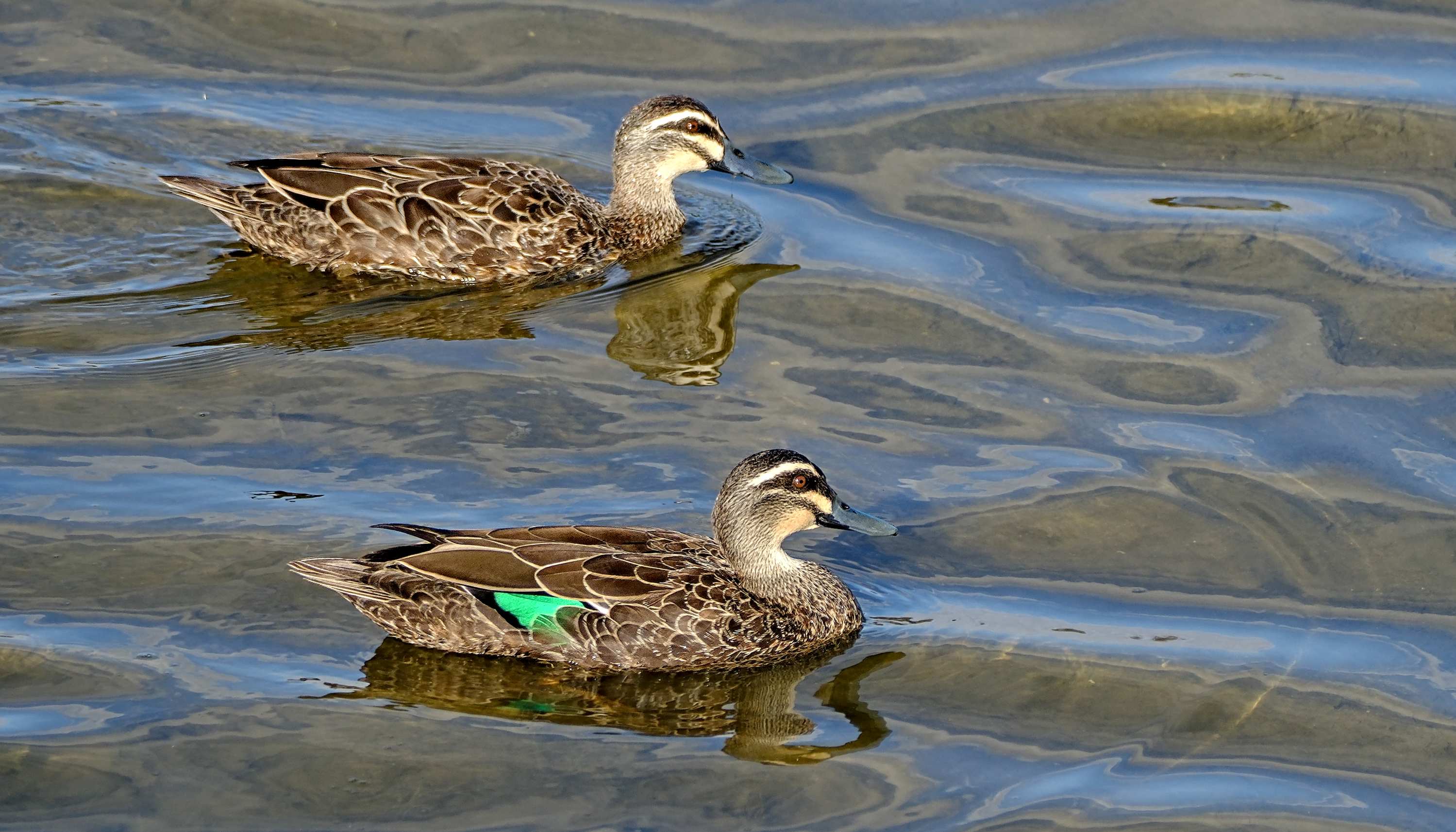 Ein Pärchen Augenbrauenenten (Anas superciliosa)