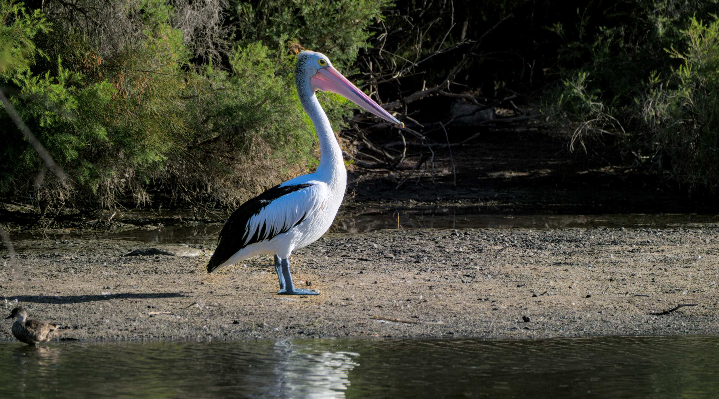 Australischer Pelikan am 'Avon River (Fluss)' in Northam.