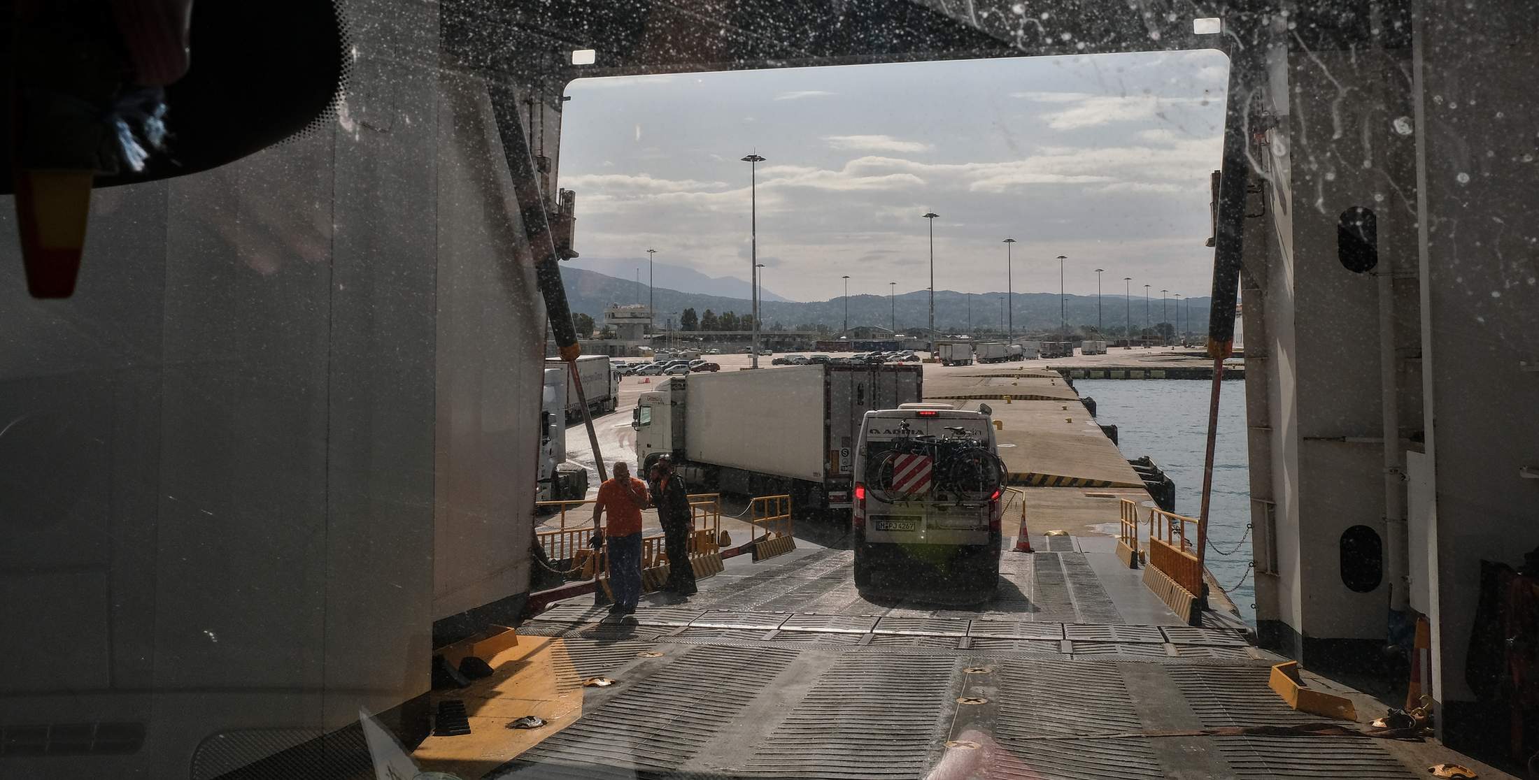 In Patras fahren wir von der Fähre herunter, es war eine angenehme 17-stündige Überfahrt.