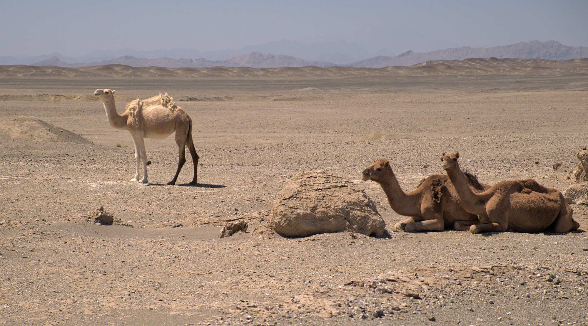 Auf unserer Weiterfahrt Richtung Grenze nach Pakistan queren wir am Rande die Wüste Lut, UNESCO Weltnaturerbe und einer der heißesten Orte der Erde. Hier wurden am Boden schon 78°C gemessen, bei uns sind es heute jedoch "nur" etwa 45°C Lufttemperatur.