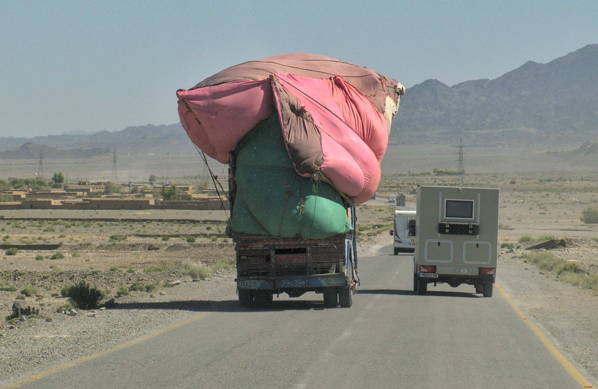 Während dreier Tage durch Belutschistan an der afghanischen Grenze entlang müssen wir weiter Kolonne fahren und werden rund um die Uhr von der Polizei bewacht. Nachts stehen wir auf umzäuntem Gelände. Einkaufen usw. ist nicht drin, die Ordnungshüter geben den Takt vor. Außer an den vielen Straßensperren, beim häufigen Wechsel der Polizisten und zum täglichen Tanken halten wir tagsüber nicht an.