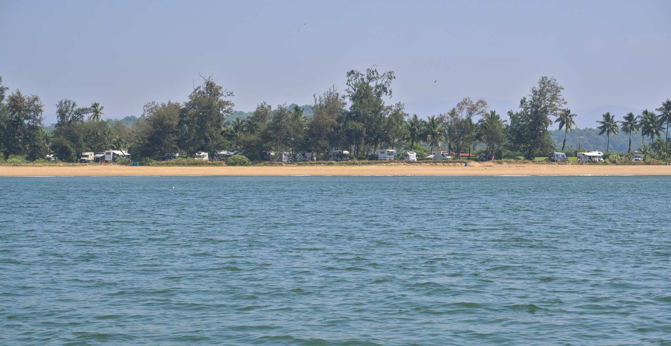 Unser Strand in Goa. Wir stehen in einem Golf- & Spa-Resort, u.a. mit warmen Duschen am großen Pool. Das Meer ist gut temperiert und der "Privatstrand" des Hotels schön und leer.