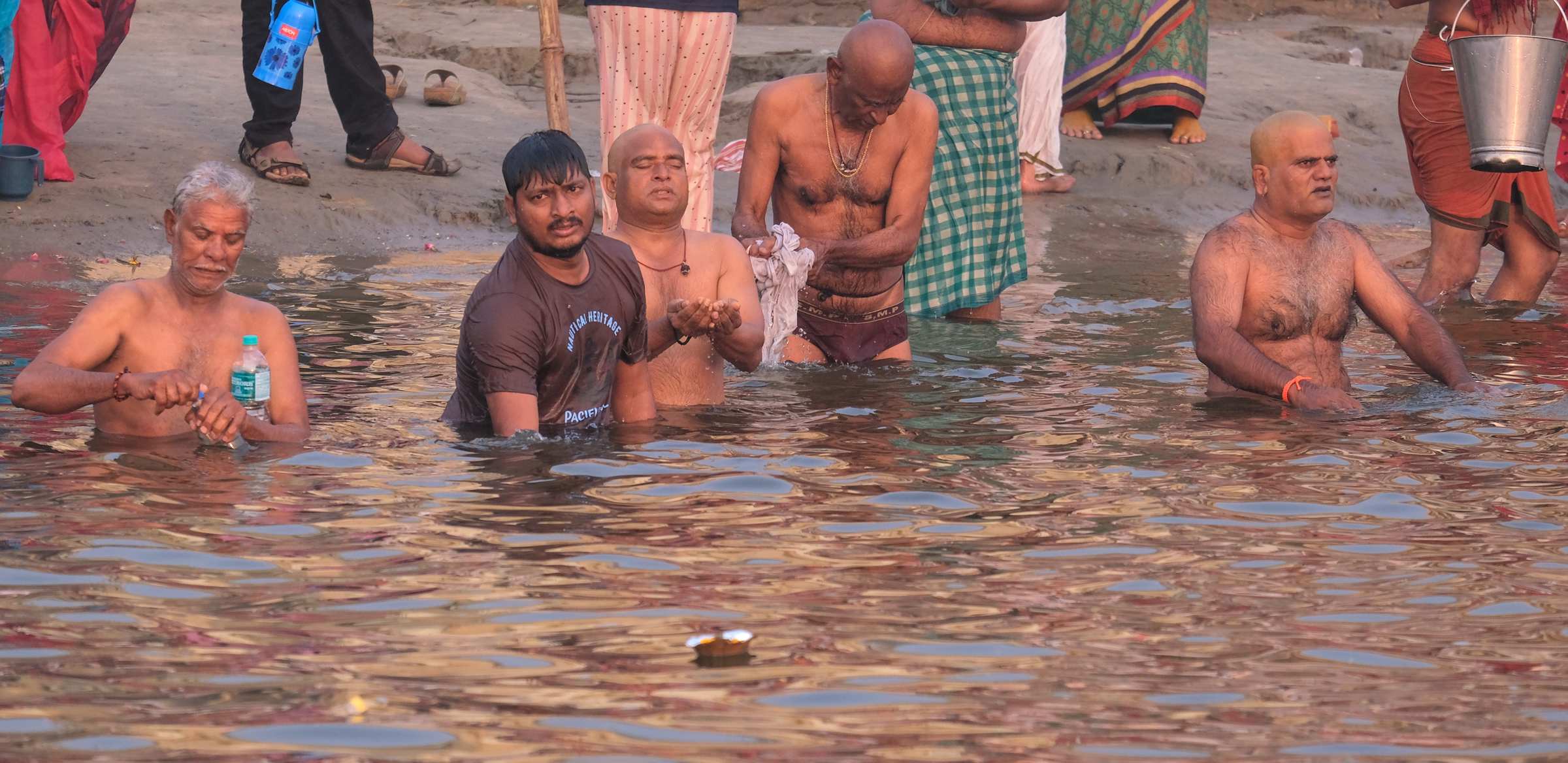 Viele Gläubige und Zuschauer kommen mit dem Boot und es herrscht indientypisch heilloses Durcheinander aber auch unendliche Gelassenheit.