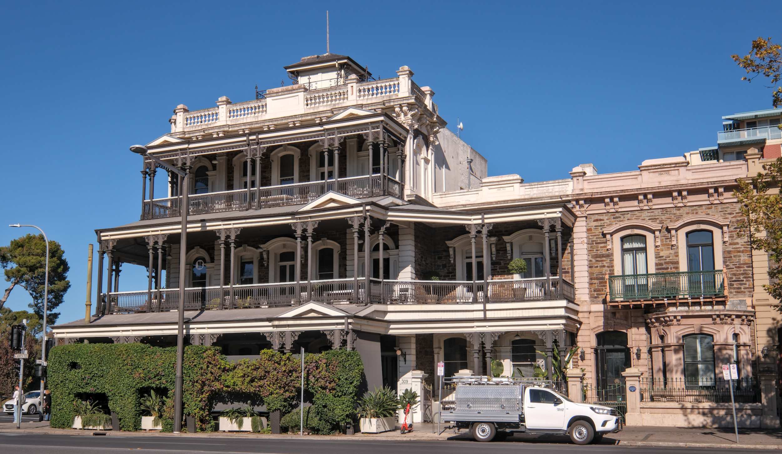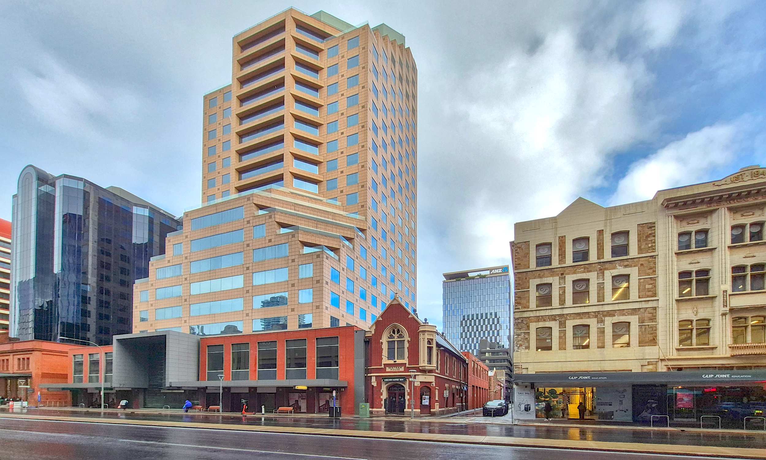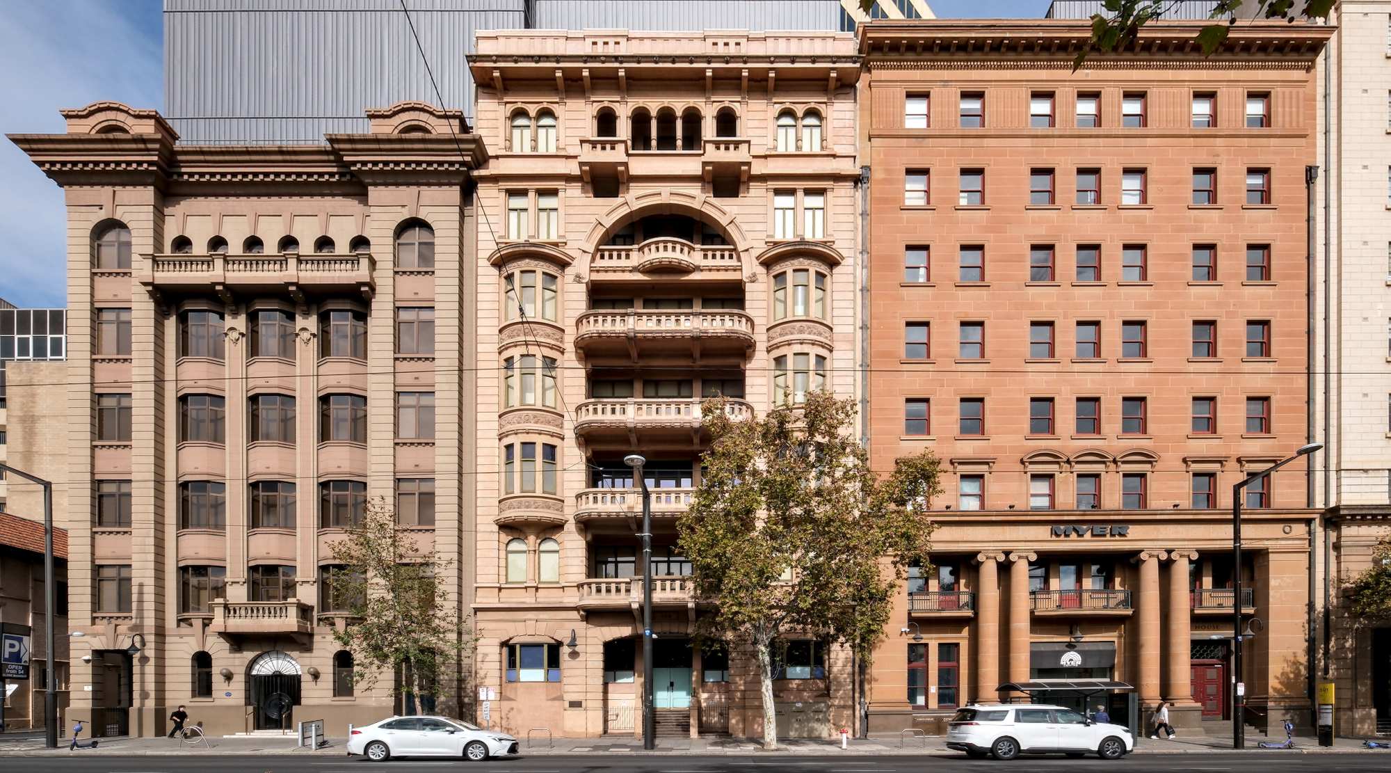 In Adelaide stehen im Zentrum von vielen alten Häusern nur noch die Fassaden, dahinter ragen Neubauten in die Höhe.