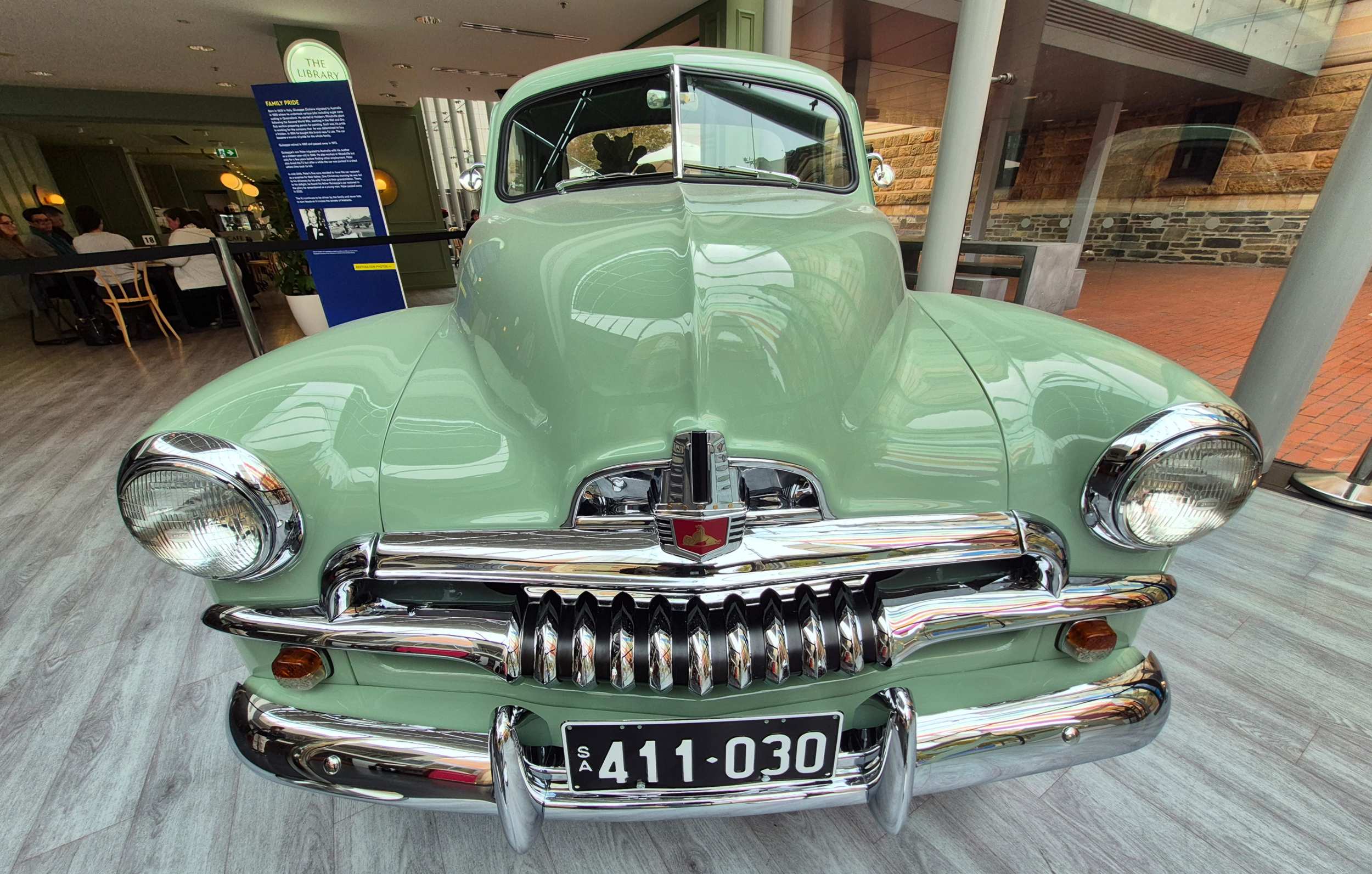 In der Bibliothek gerade eine Sonderausstellung zur australischen Automarke 'Holden', die es seit 2021 nicht mehr gibt. Hier ein 'FJ Holden Special Sedan' aus den 50er Jahren.