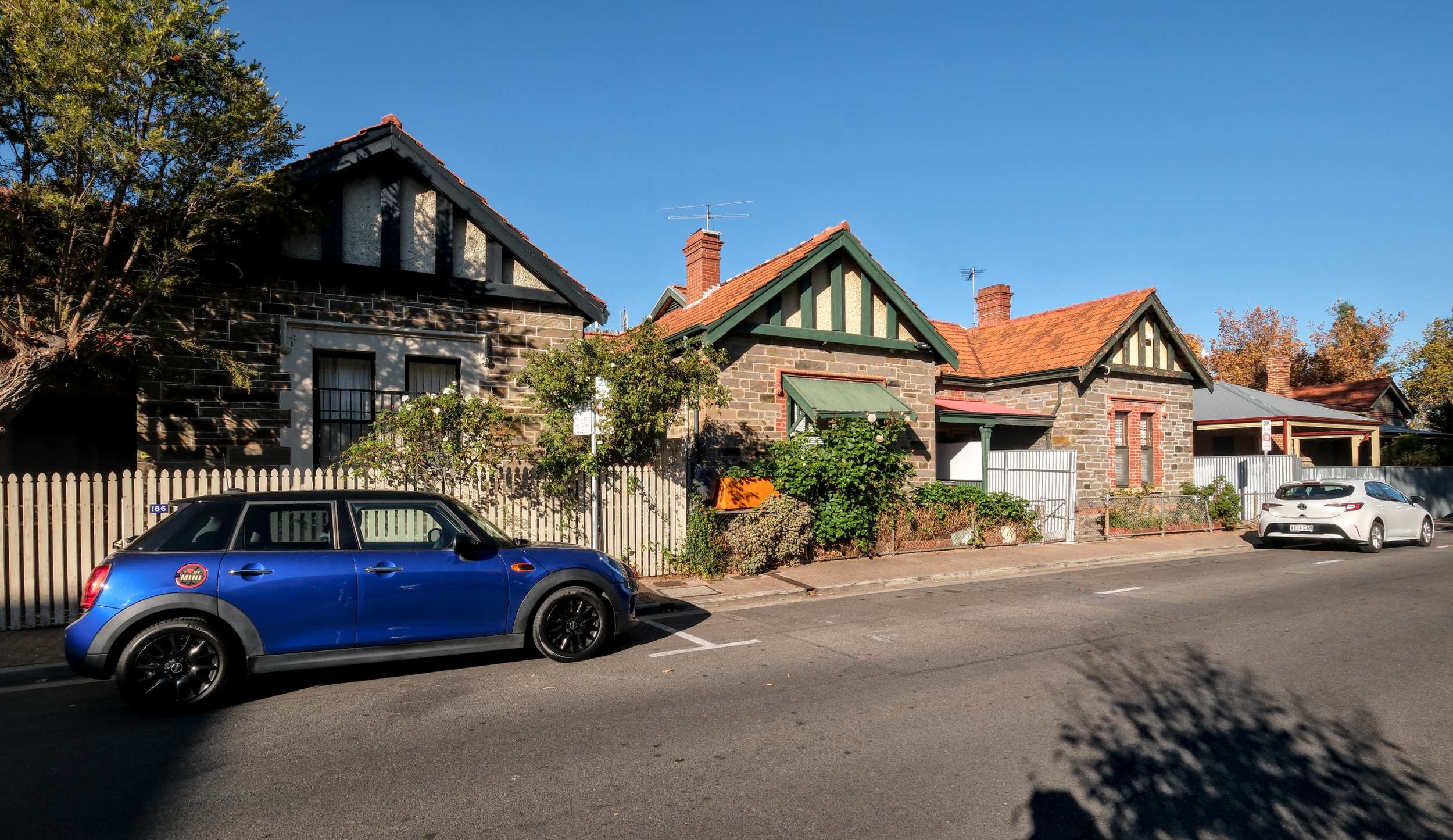 Bei einem der beiden Fußmärsche aus dem Zentrum zum daran angrenzenden Showground sehen wir zwei Seiten der Stadt: eine etwas düstere Gasse und diese netten denkmalgeschützten Häuser, gebaut um 1880.