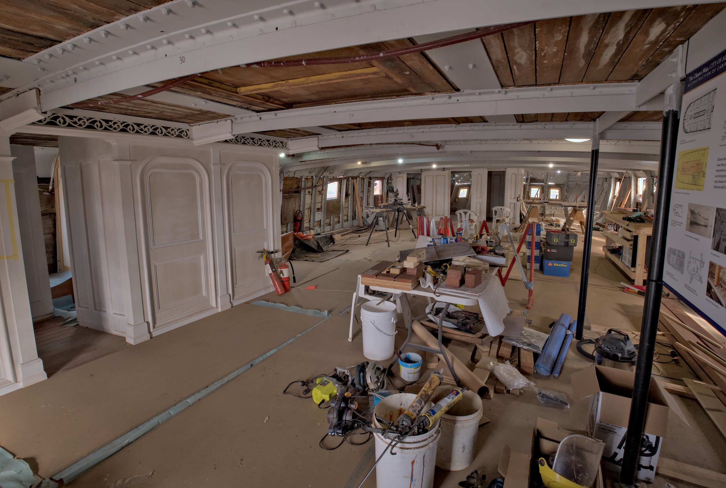 Am und im Klipper 'City of Adelaide' haben die ausschließlich Freiwilligen noch sehr viel zu tun, aber segeln wird er leider nicht mehr. Seinen Stapellauf hatte er 1864 in England.