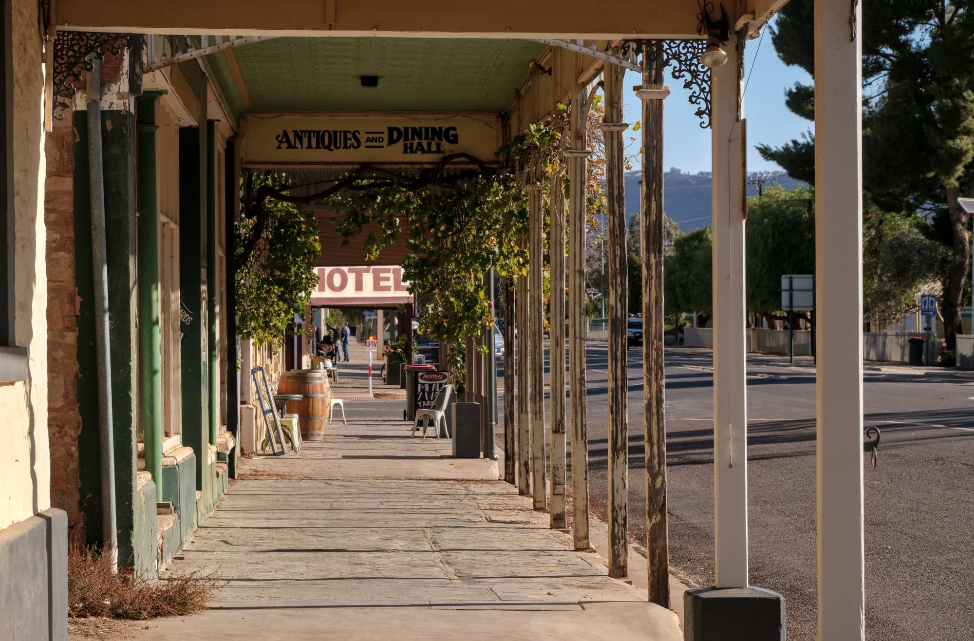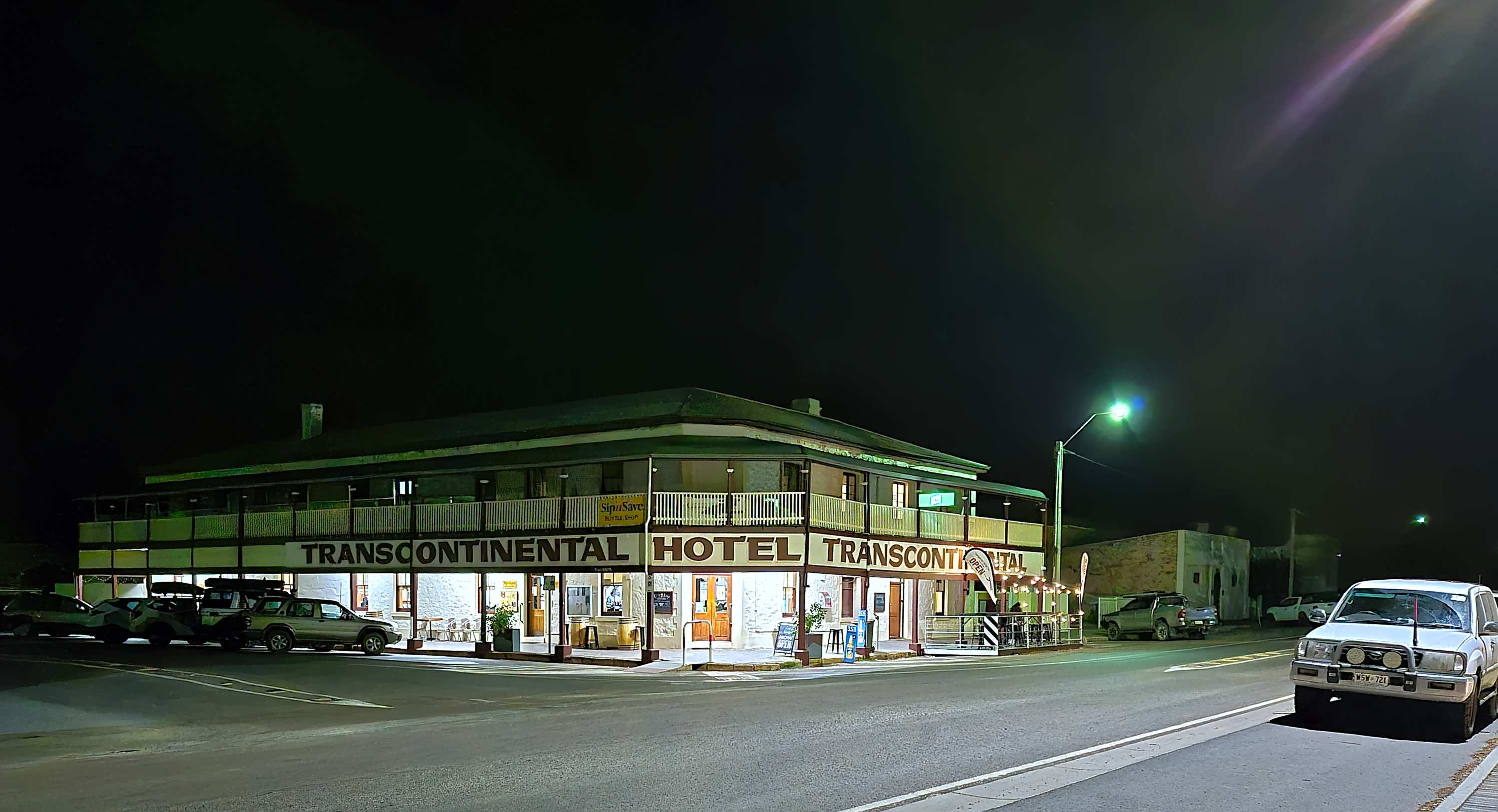 Dem geneigten Verfolger unserer Route auf der Onlinekarte wird aufgefallen sein, dass wir uns erst heute wieder bewegt haben. Wilhelm hatte schlimmen Rücken und Bewegung ging erstmal gar nicht. Eine Woche haben wir so leider verloren, allerdings konnte Ulrike ihrer "geliebten" Bürotätigkeit nachgehen und ein paar wichtige Dinge erledigen. Am ersten Abend waren wir noch Infofilme, projiziert auf ein riesiges Getreidesilo, ansehen und haben uns im recht vollen, echt australischen Pub des 'Transcontinental Hotel' ein 'Chicken Schnitzel' geteilt. Gestern Abend haben wir jeder eine Portion bestellt, aber sie nicht geschafft, weswegen es gleich Schnitzel mit Kartoffel-Gurkensalat gibt.