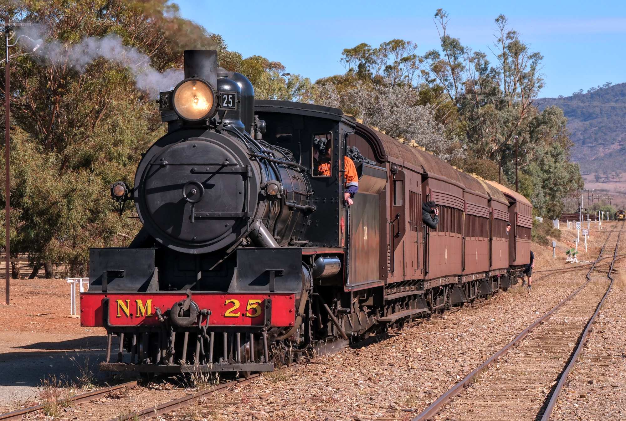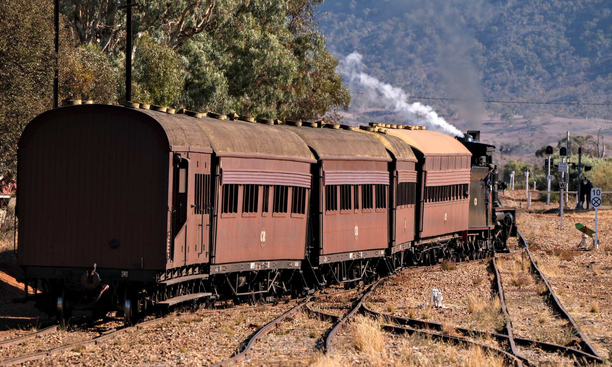 Der 'Afghan Express' von Port Augusta kommend fährt pünktlich in den Bahnhof ein und verlässt ihn zwei Stunden später wieder zur Rückreise.