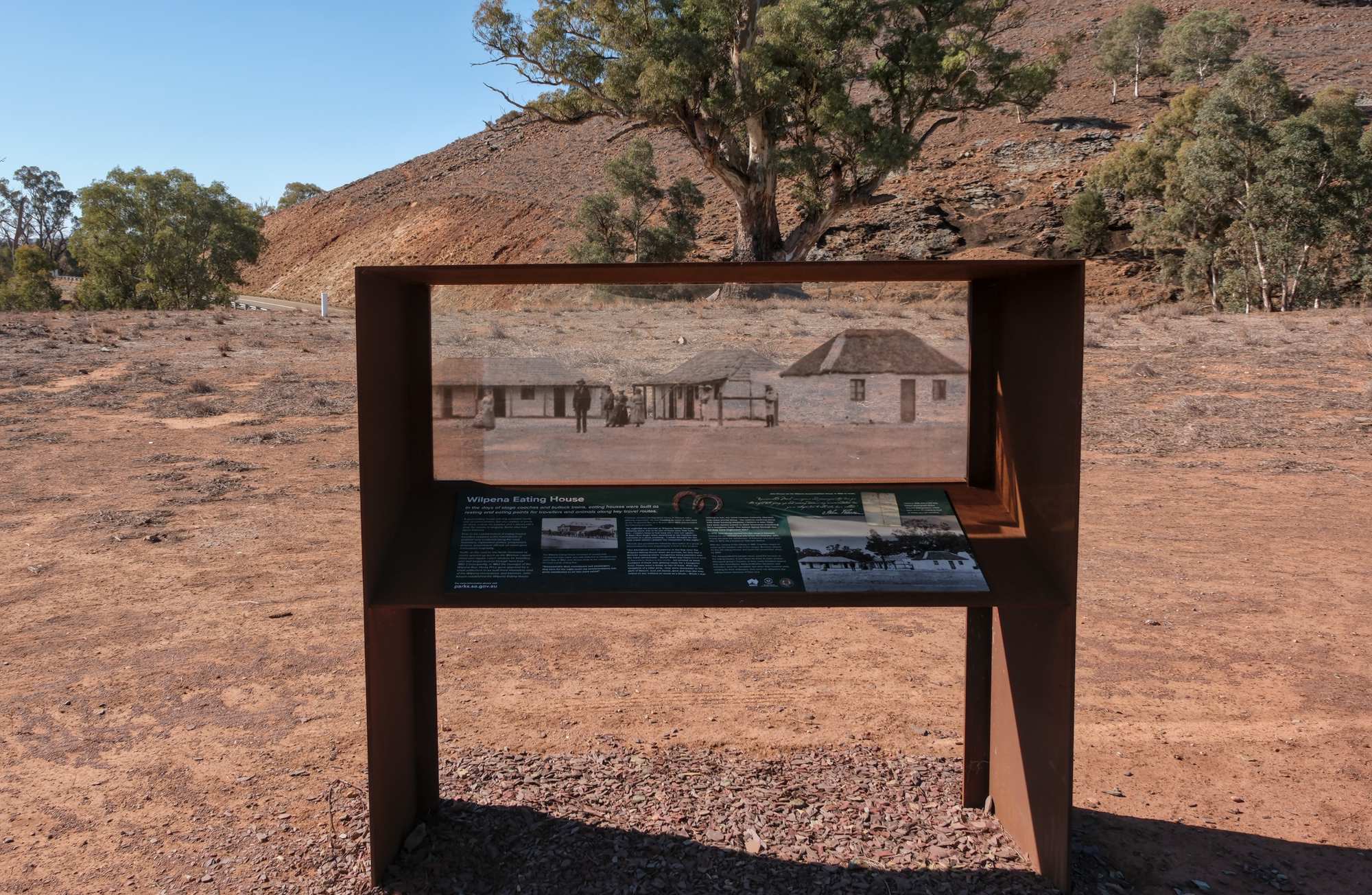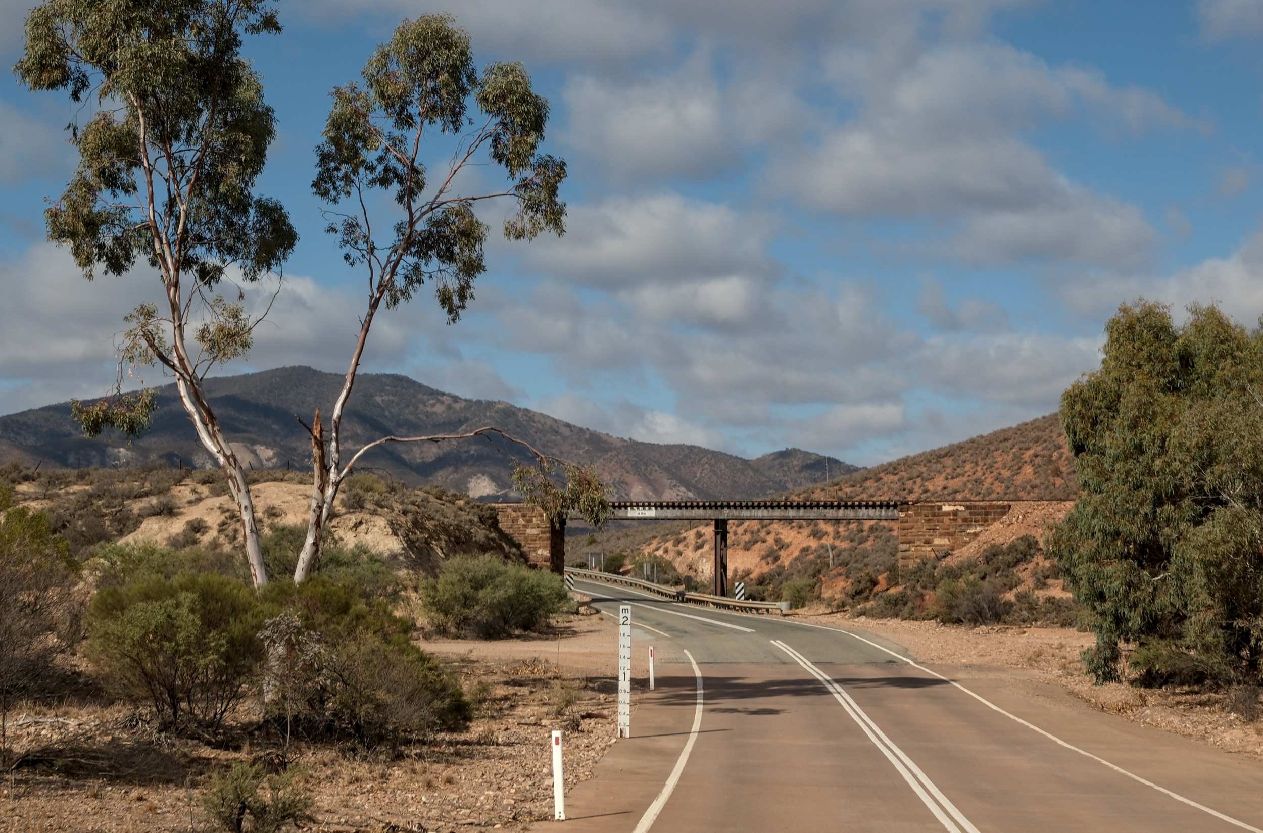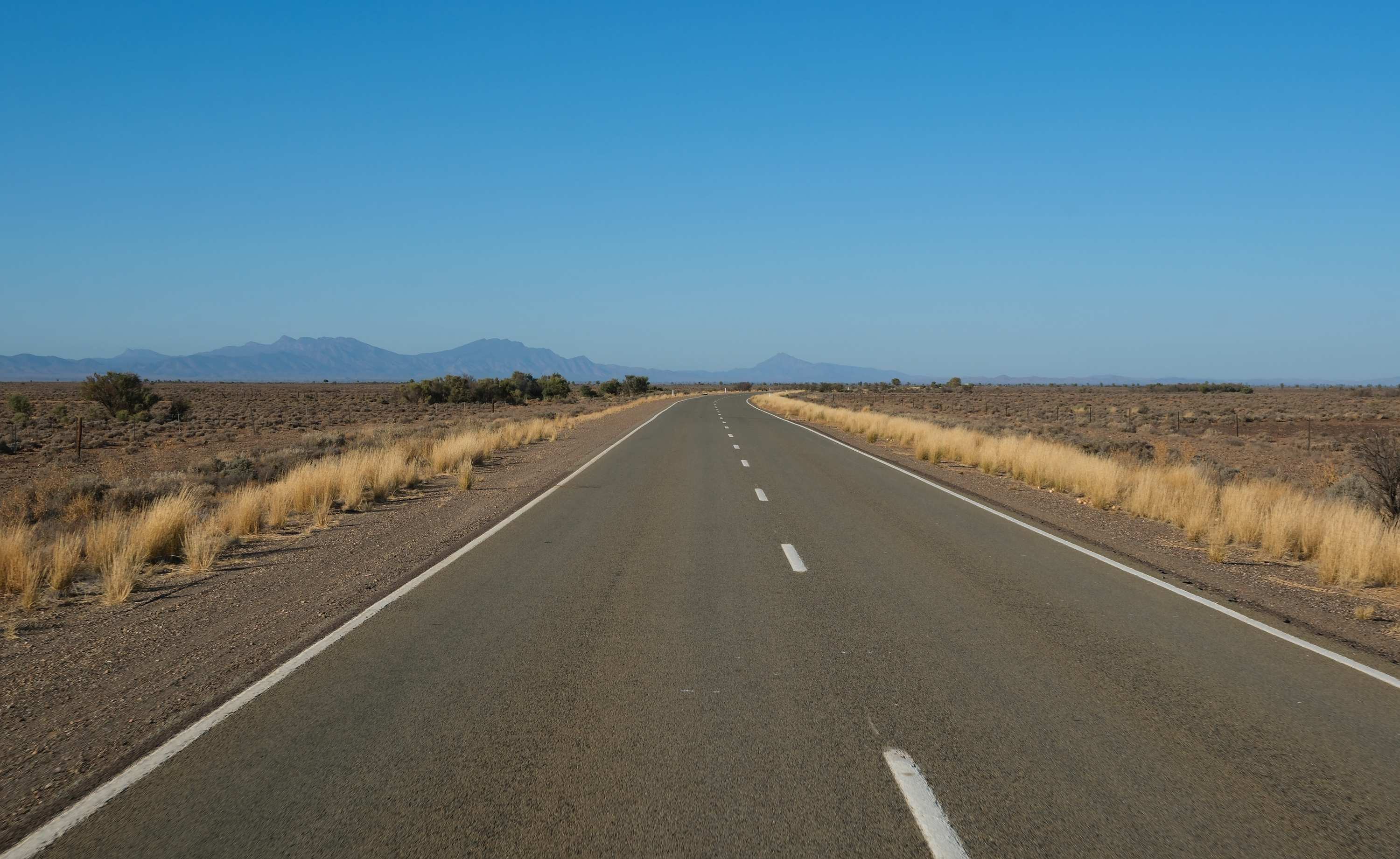 Es gibt zwei gute Straßen: Den hier abgebildeten 'Outback Highway' im Westen und den 'Flinders Ranges Way' im Osten, dazwischen Ungeteertes in sehr unterschiedlicher Qualität.