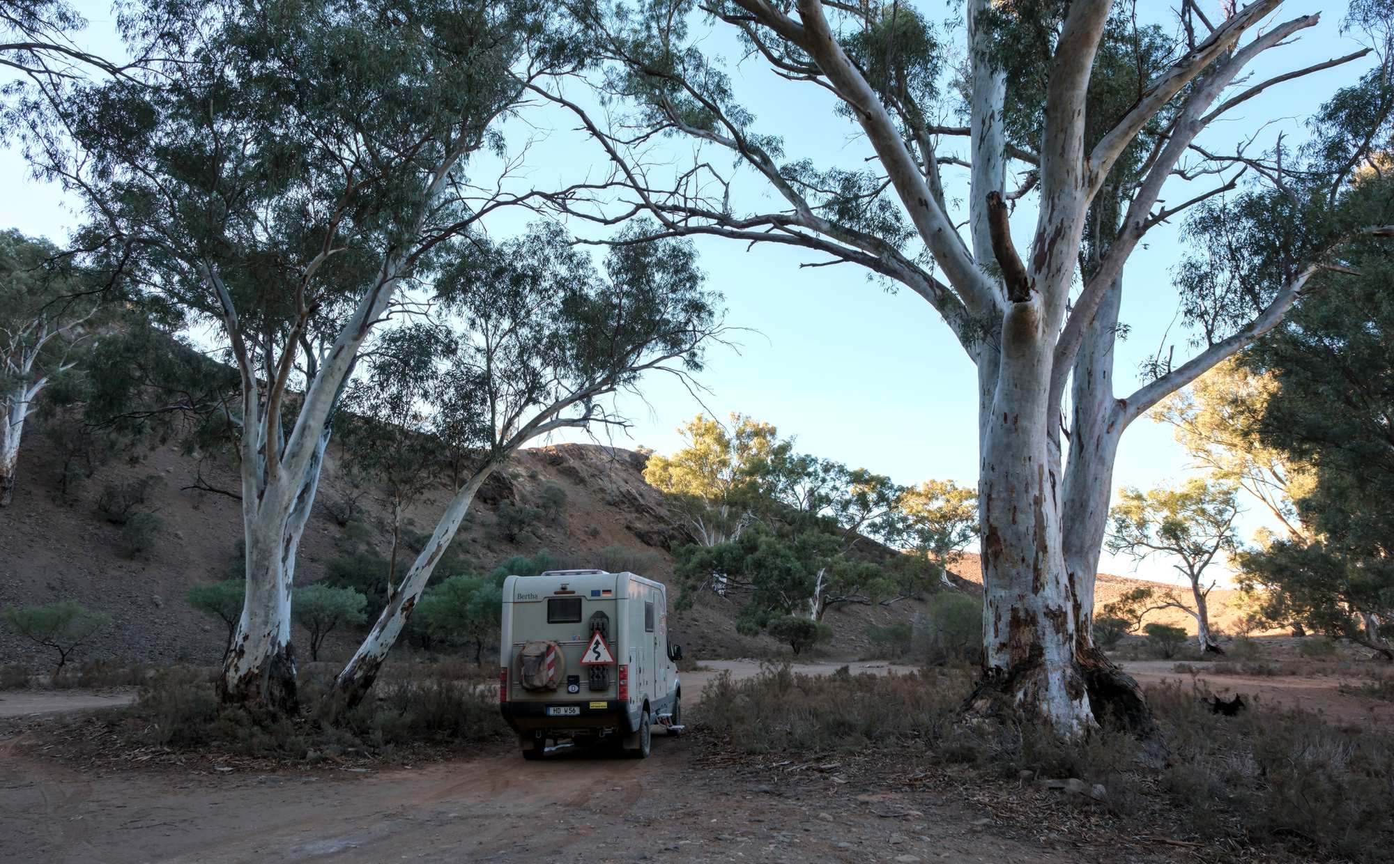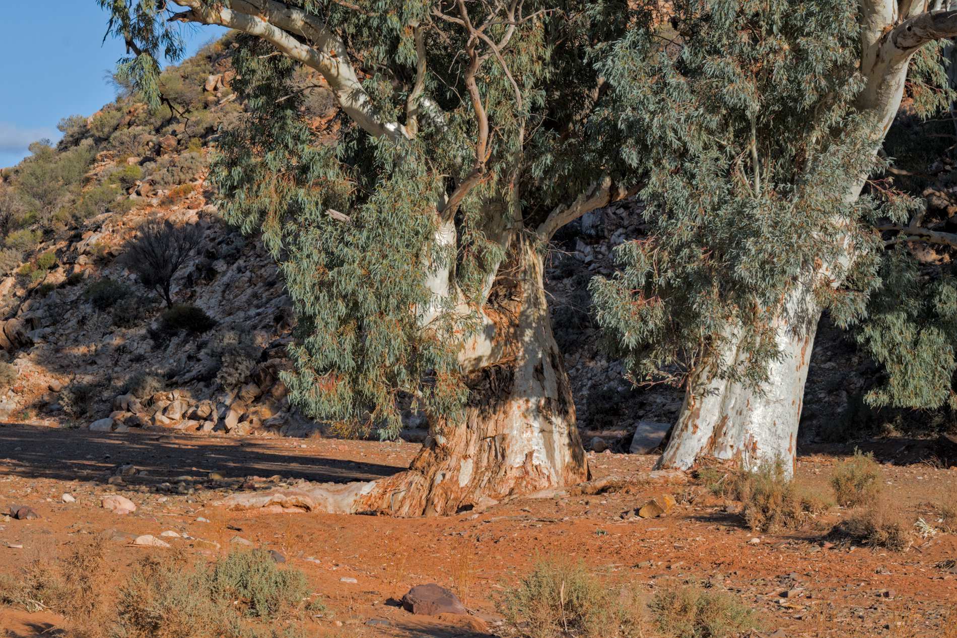 Silber glänzen die in den temporären Flussbetten wachsenden 'River White Gum'.