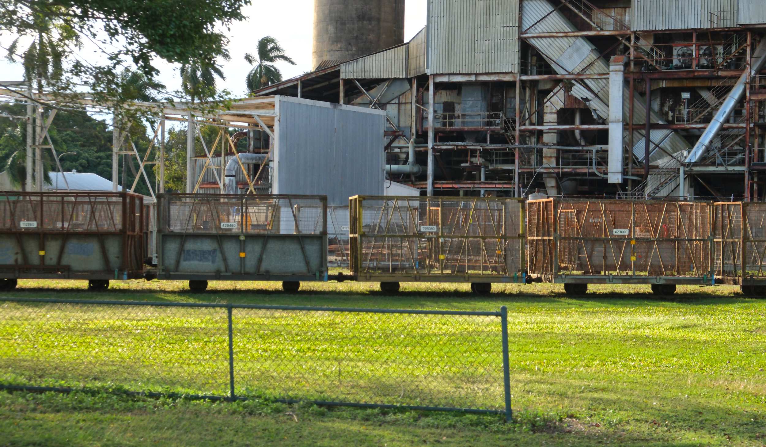 Mit solchen 'Sugar Trains' (Zuckerzügen), auf Gleisen mit 61 cm Spurweite, wird das Zuckerrohr in die Fabriken gebracht. Die schmalen Gleise durchziehen die ganzen Landschaft.