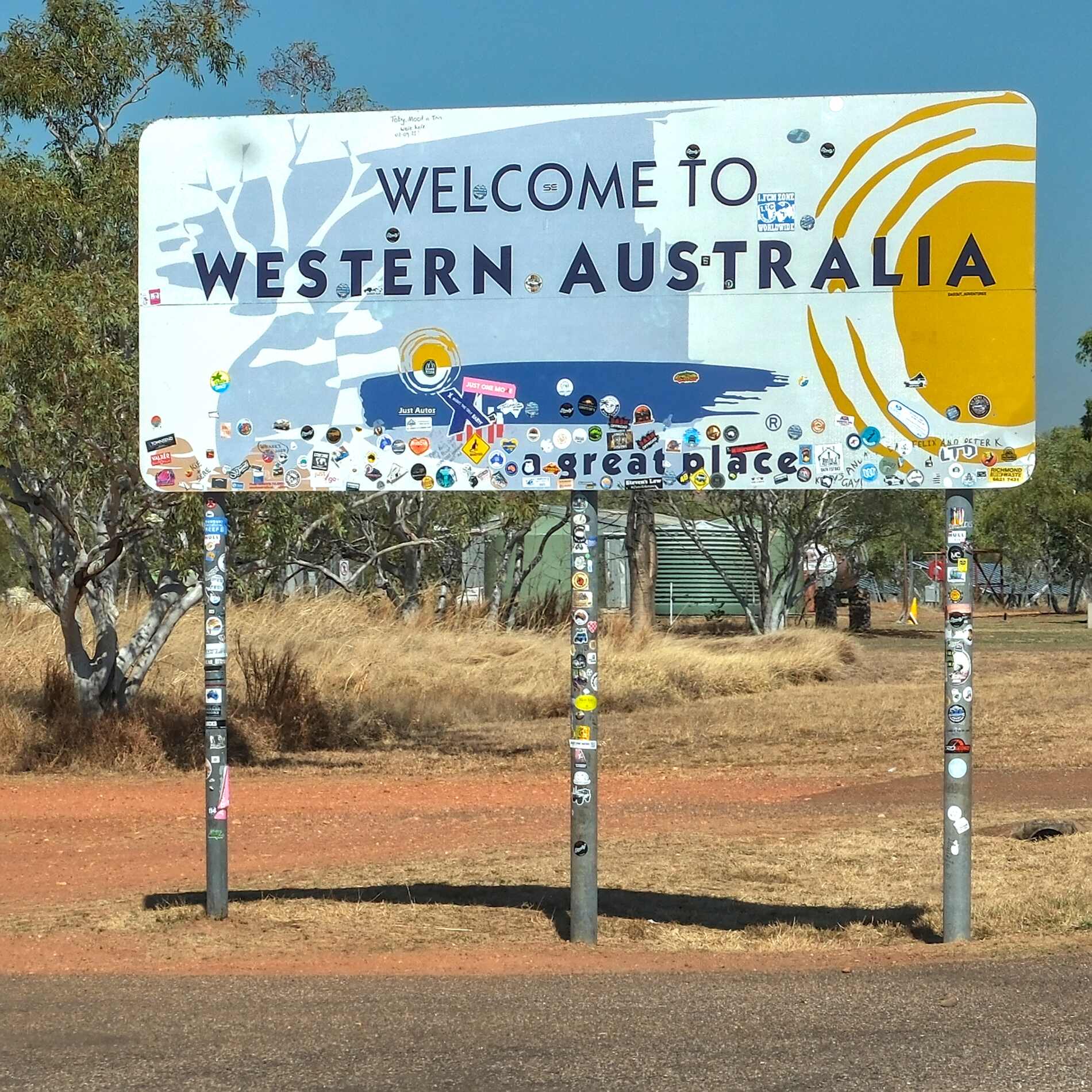 Wir überqueren zum ersten Mal die Grenze nach Westaustralien. Bei der Biokontrolle bemängelt ein übel gelaunter Offizieller unsere nicht ganz tiefgefrorene Petersilie und entsorgt sie zu unserem Bedauern.