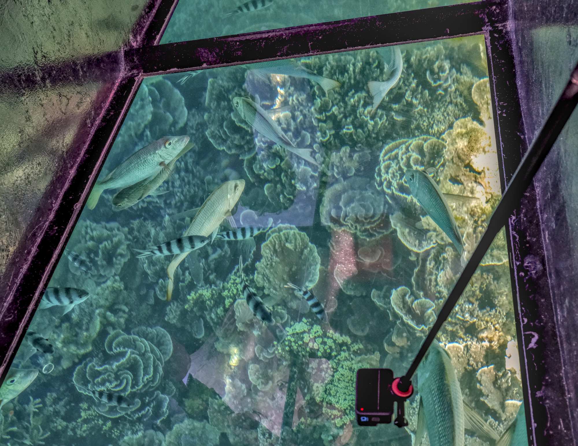In 'Coral Bay' machen wir eine Tour mit einem Glasbodenboot.