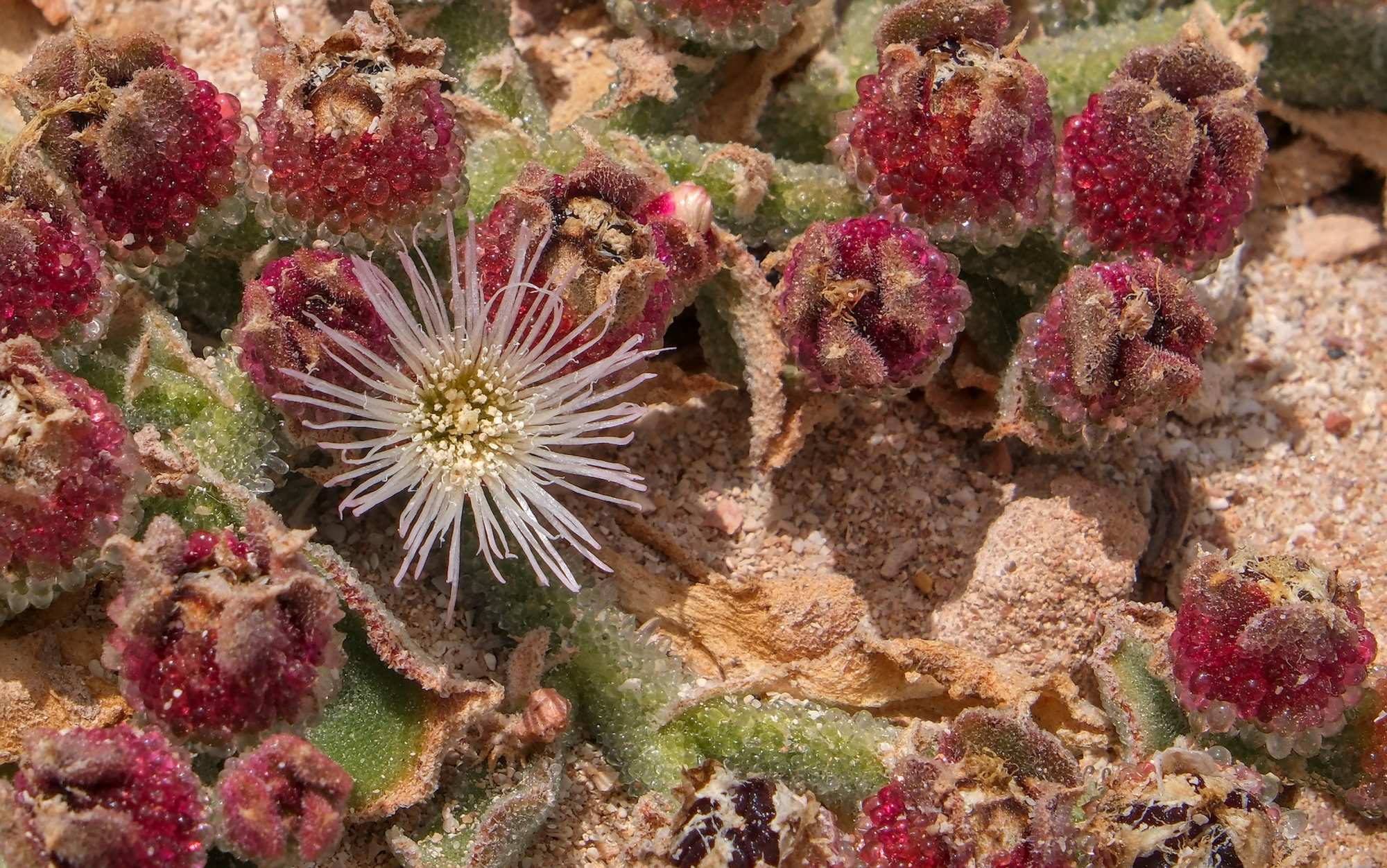 Als wir heute Morgen den Abzweig auf die asphaltierte(!) 'Carnarvon Mullewa Road' nahmen, kam uns nach etwa 30 km das erste Auto entgegen und prompt flog ein Stein in unsere Windschutzscheibe, hinterließ leider einen ordentlichen Krater und auch Risse in beide Richtungen. Da die Scheibe gerade einmal 8 Wochen alt ist, ganz besonders ärgerlich, aber wir können es nicht ändern.