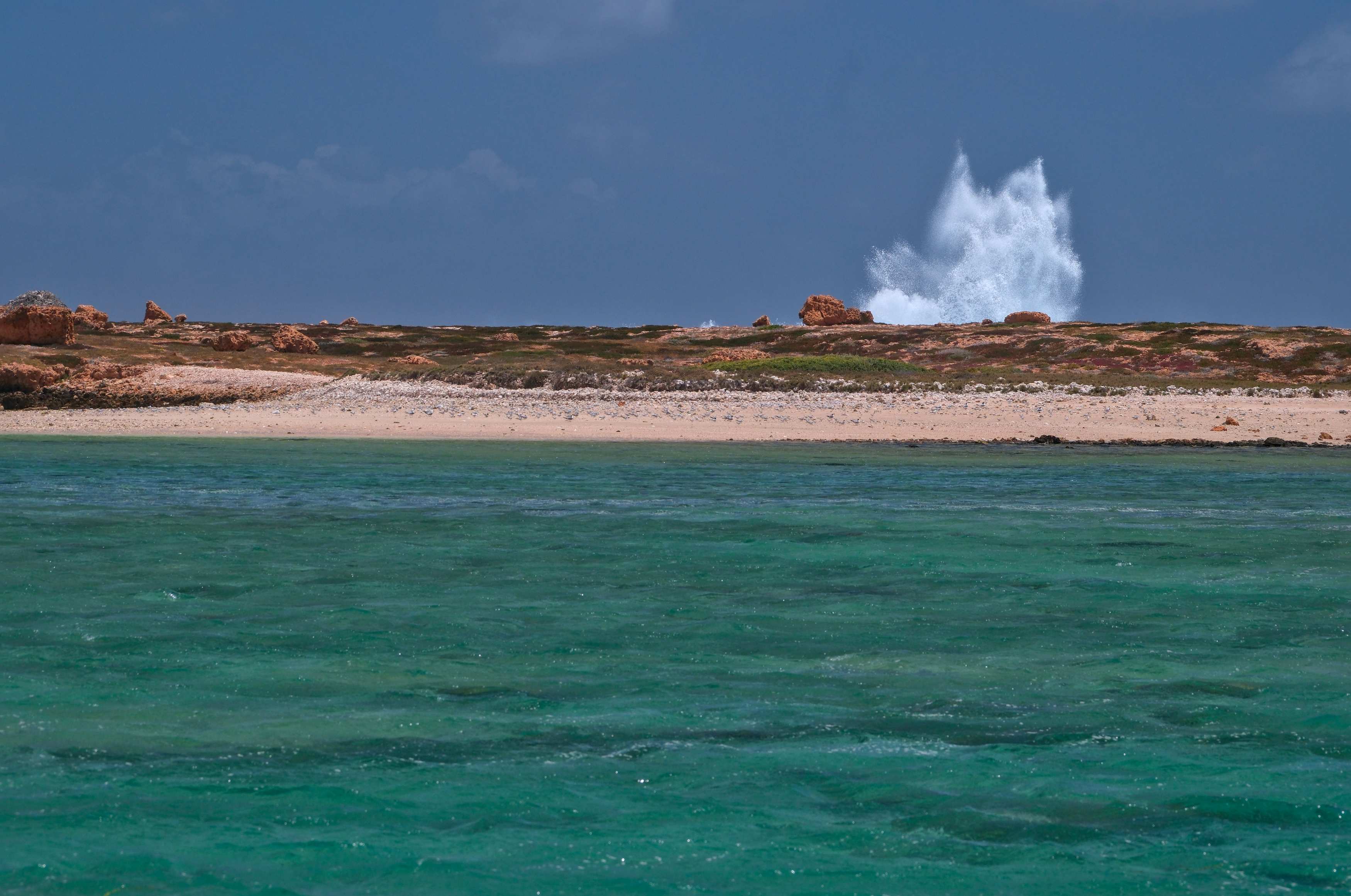 Das 'Carnarvon Blowhole' faucht und bläst die Gischt dutzende Meter in den Himmel.