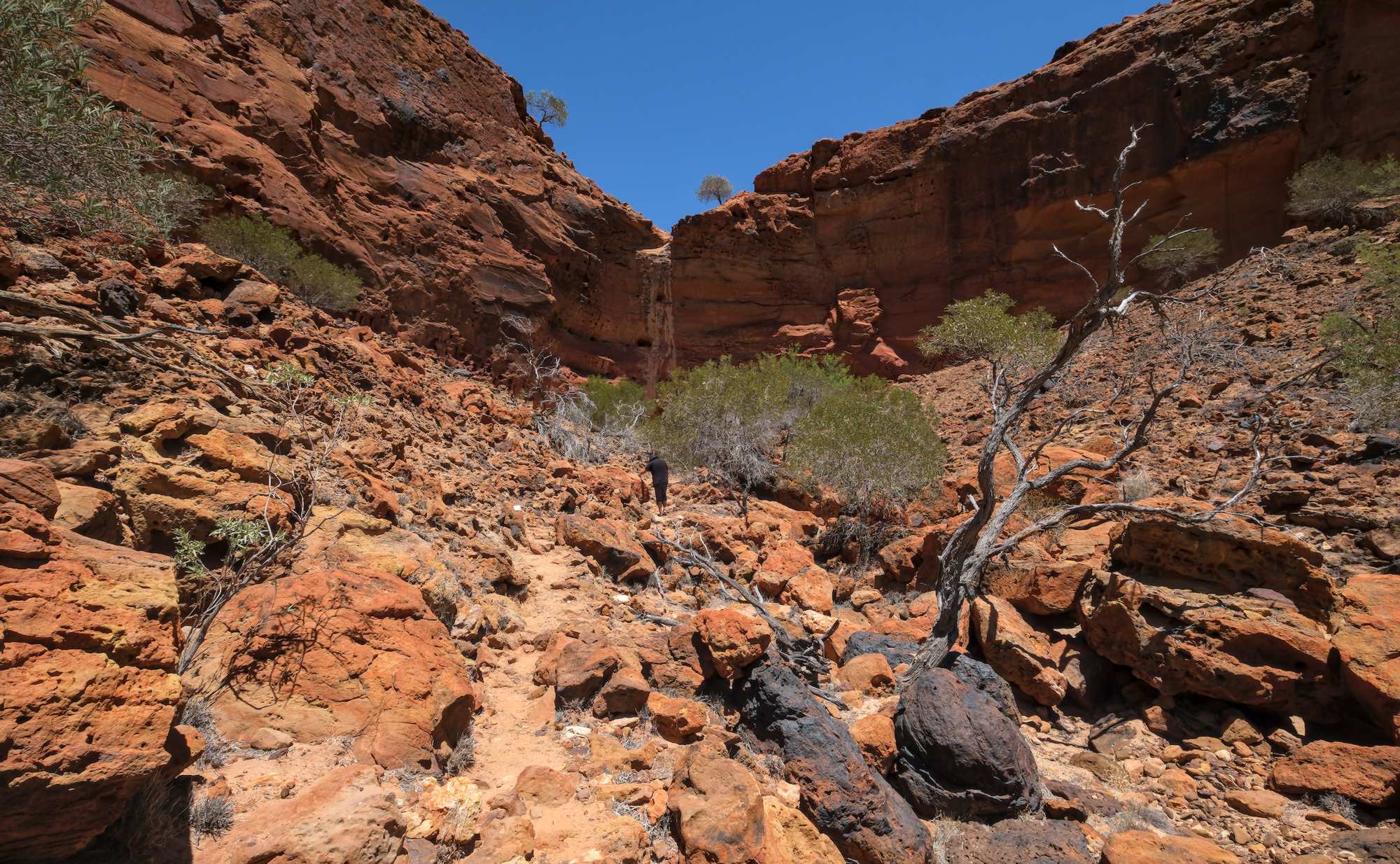 Wir laufen in die 'Temple Gorge (Schlucht)' hinein.
