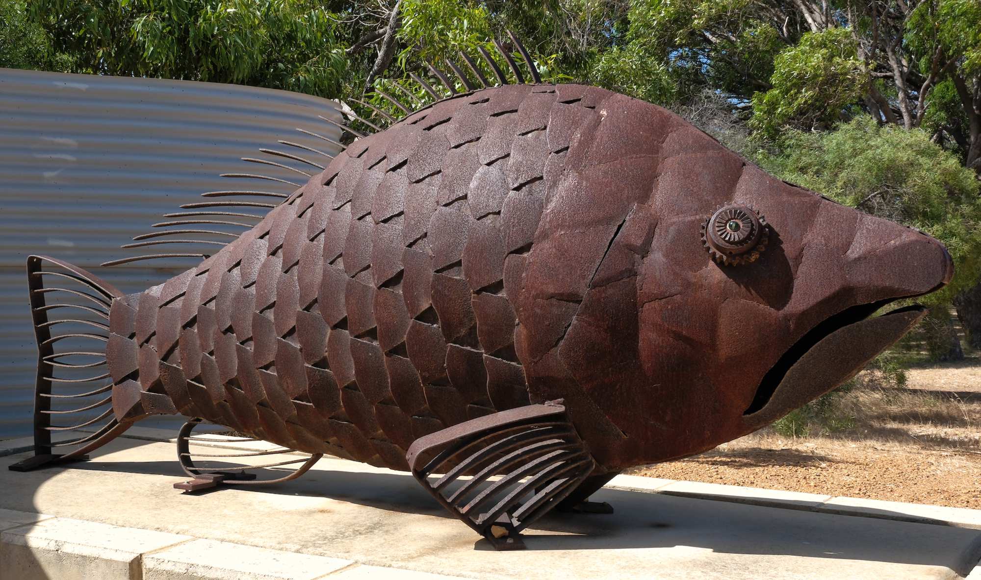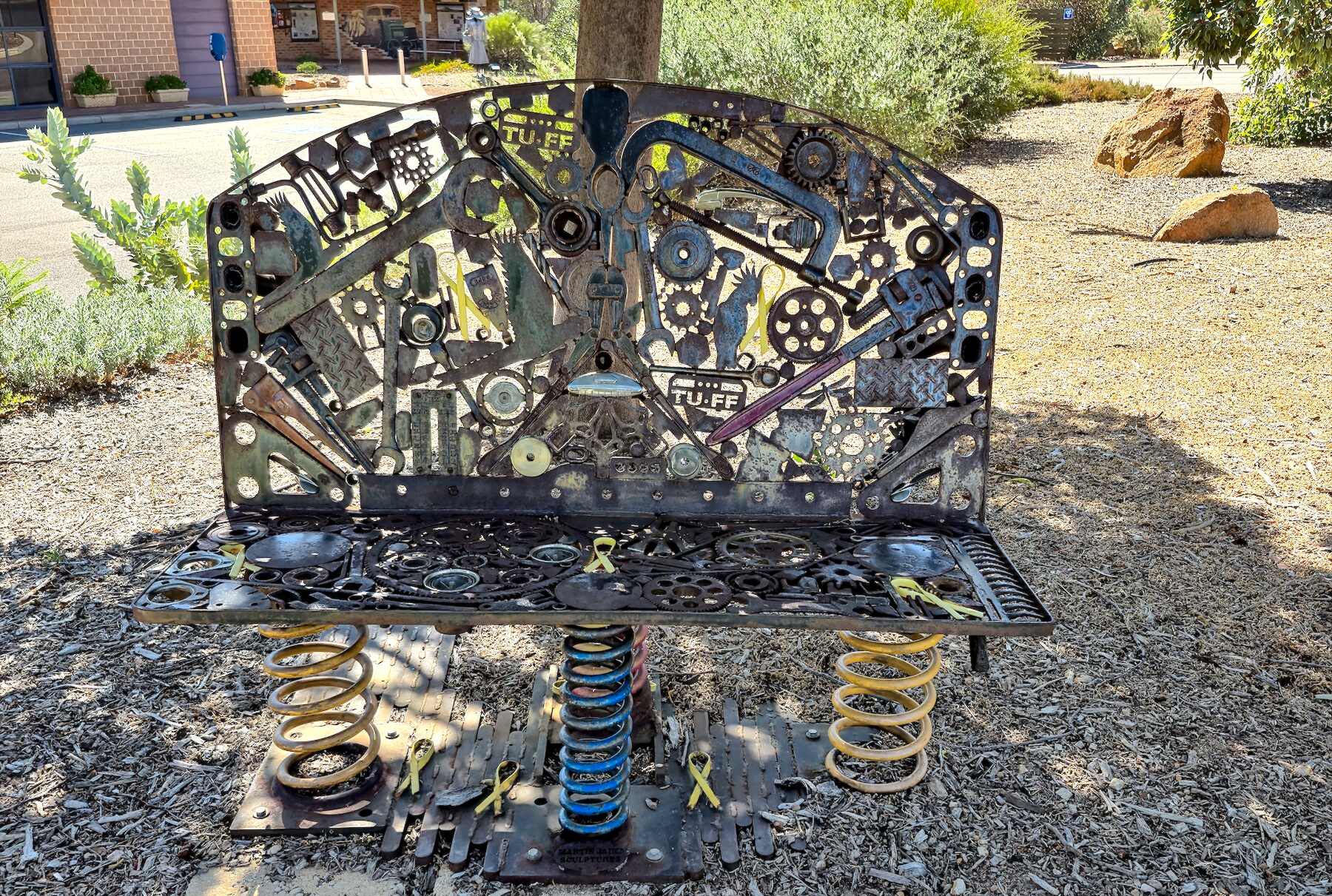 Sitzbank und Blechlady in 'Wongan Hills'.