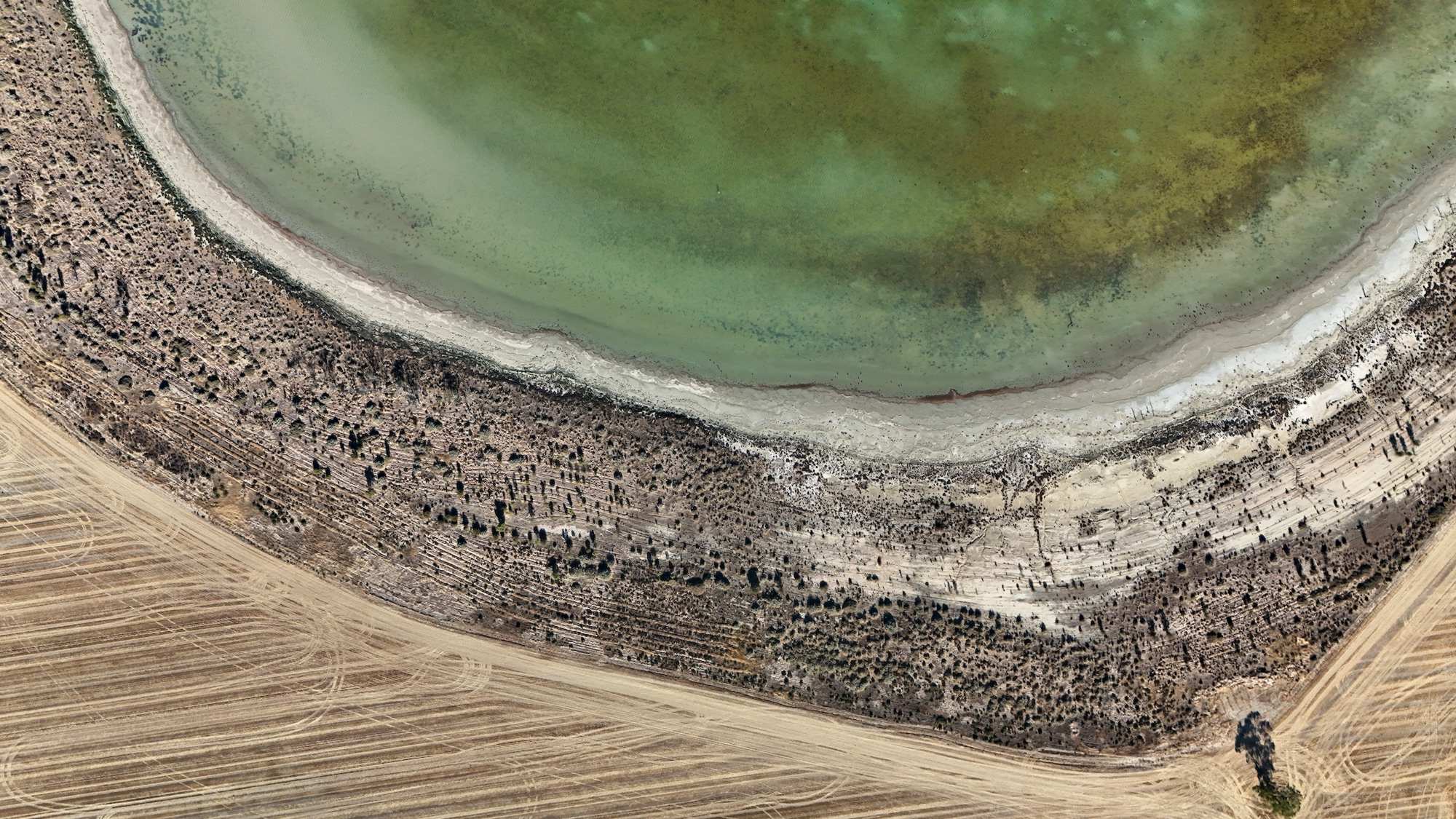 An mehreren Orten macht Ulrike mit der Drohne Fotos von Salzseen. Von unten sind diese relativ belanglos, von oben faszinierend.