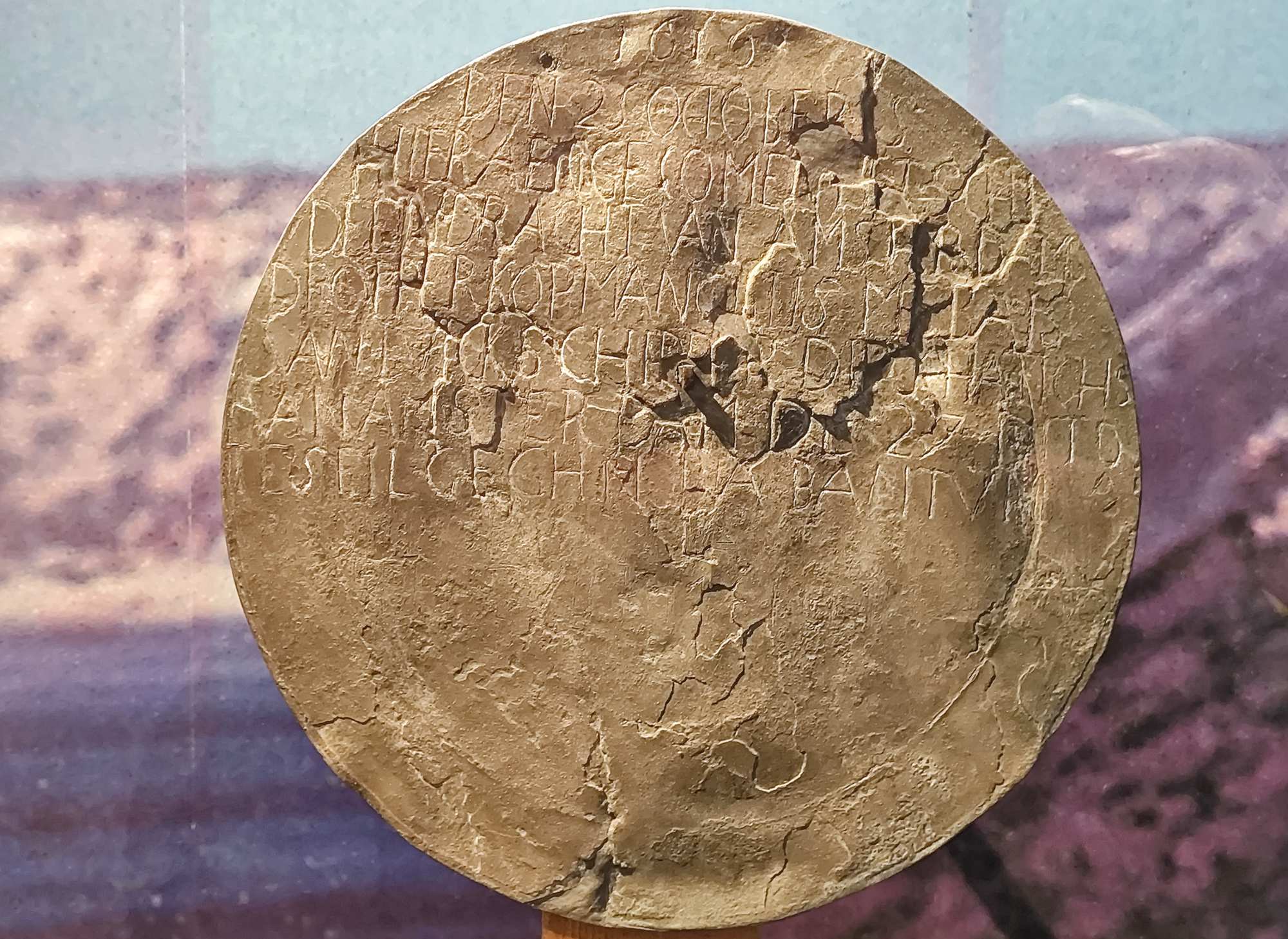 Diese Kopie eines Zinntellers, an einem Pfahl von Kapitän Dirk Hartog zurückgelassen, markiert die erste dokumentierte Landung eines Europäers an der Westküste Australiens und die zweite auf dem Kontinent überhaupt.