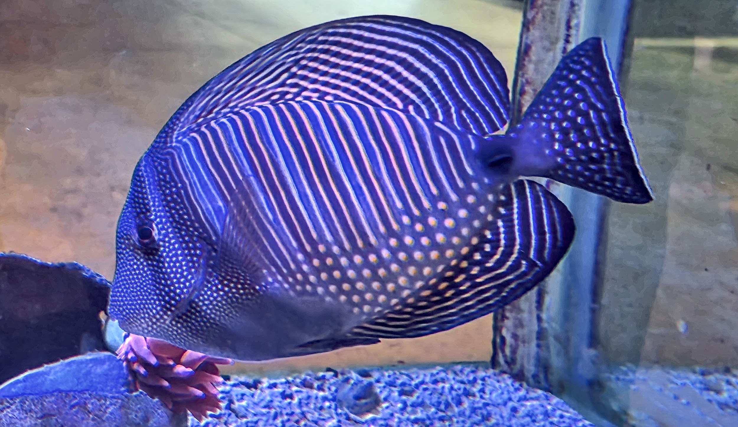Während wir Fish&Chips verspeisen, schauen uns die beiden aus dem Aquarium zu.