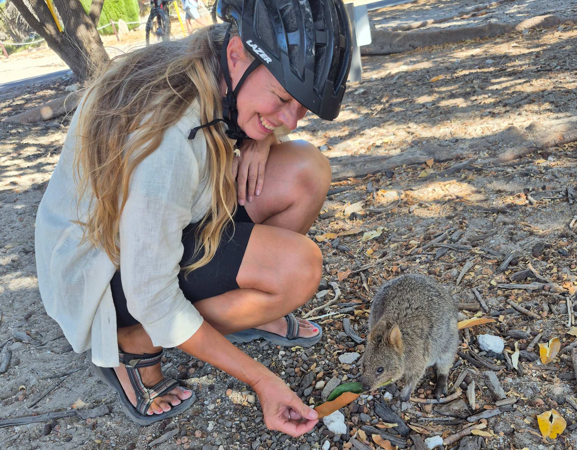 Gestern sind wir frühmorgens mit einem schnellen Katamaran hinüber auf die Insel 'Rottnest Island' (Rattennestinsel) gefahren und mit eBikes gut 40 km rund um die Insel, rauf und runter, gegen und mit dem Wind, gekurvt. Viele sehr schöne Buchten mit tollen Stränden und vor allem die Quokkas, beileibe keine Ratten, sondern sehr kleine, sehr putzige Kängurus, da lag der alte holländische seefahrende Namensgeber böse daneben, haben uns fasziniert. Hernach abends todmüde in die Koje gefallen.
