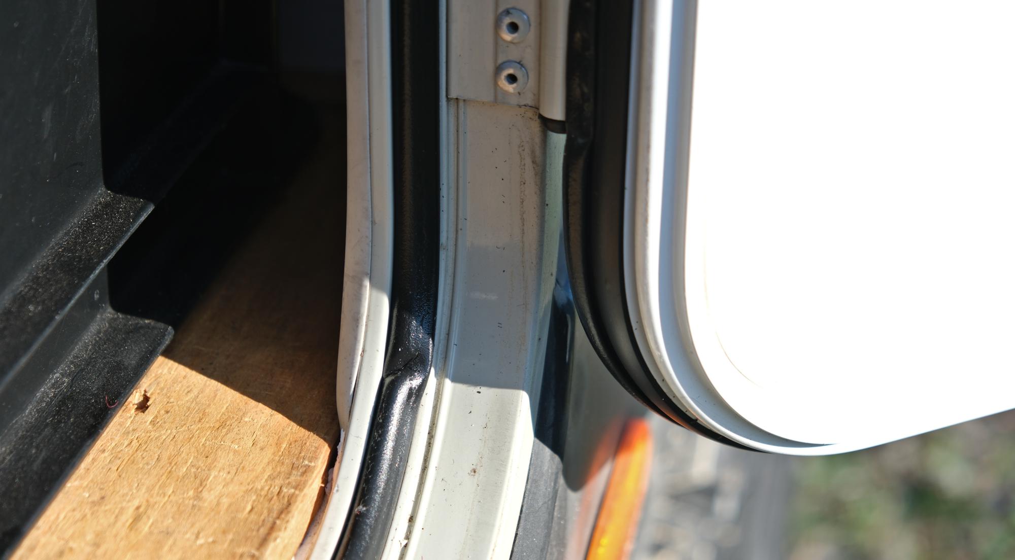 Auf einen Tipp hin lassen wir uns auch noch Schwallwasserdichtungen an der Eingangstür und den Türen on Heckstauraum und Gaskasten einbauen. Die dichten alles noch einmal viel besser ab.